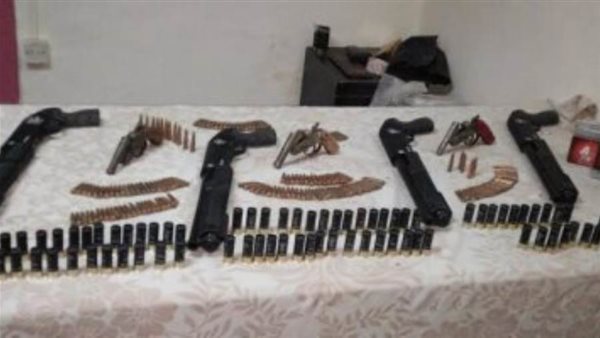 عقب تقنين الإجراءات، تم استهداف مسكن المتهم وتم ضبطه، وبتفتيش مسكنه عُثر بداخله على "بندقية خرطوش، 4 طبنجات، عدد من الطلقات مختلفة الأعيرة.