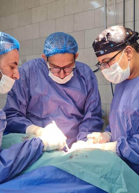 وعلى الفور قرر الفريق الطبي المكون من دكتور روماني صفوت رئيس قسم الجراحة ودكتور ديفيد كمال طبيب مقيم ودكتورة ايمان خطاب رئيس قسم التخدير ودكتورة فاطمة الزهراء مصطفى طبيب مقيم ومعاونة محمد احمد ونادية مصطفى من هيئة التمريض بالقيام بعمل تدخل جراحى باستئصال الورم وتم إجراؤهم العملية للمريض بنجاح.
