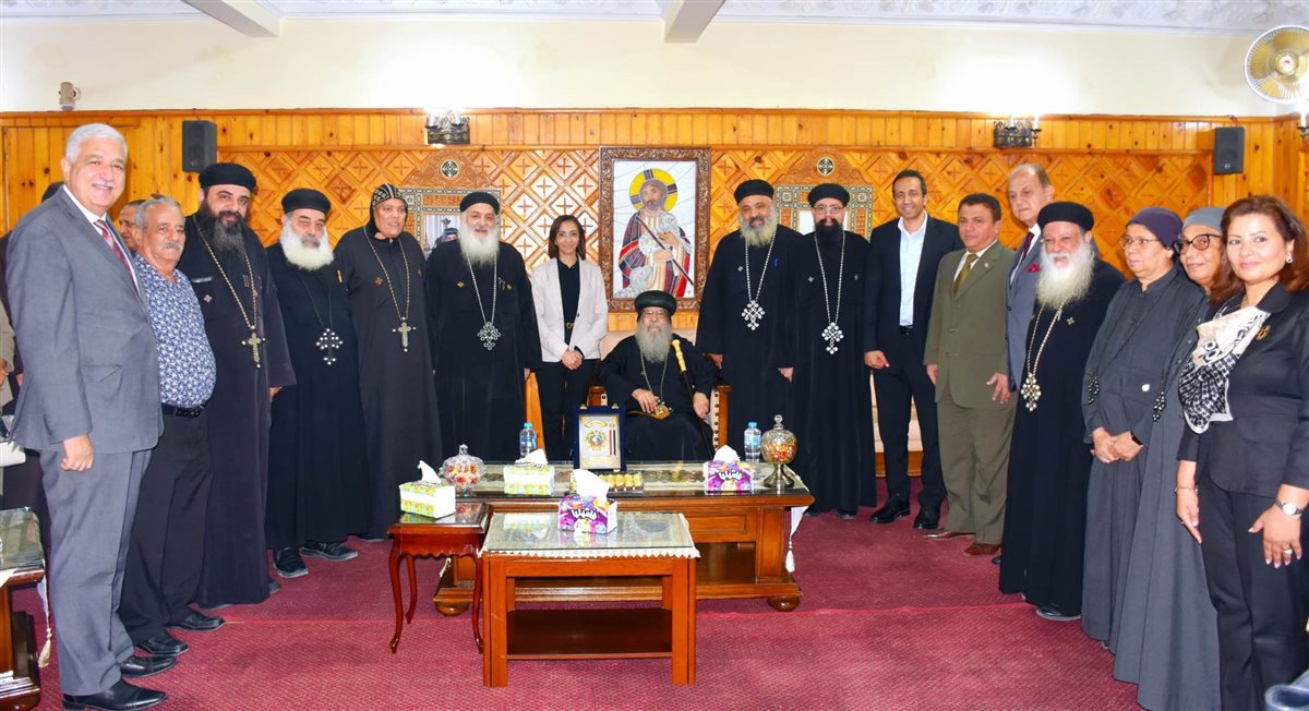 فيما رحب نيافة الأنبا باخوميوس بالدكتورة جاكلين والوفد المرافق لها، مشيرًا إلى أن الدولة المصرية تشهد في عهد فخامة السيد الرئيس عبد الفتاح السيسي، مرحلة جديدة من البناء والتنمية والازدهار، مشيدًا بجهود القيادة السياسية في تمكين المرأة ودعم برامج التنمية، موجهًا الشكر للسيد الرئيس على اختياره للعناصر المتميزة والقادرة على قيادة الجمهورية الجديدة. وأثنى الأنبا باخوميوس على الجهود التنموية والمشروعات القومية التي تُنفذ على أرض البحيرة، مشيرًا إلى دعمه لمحافظ البحيرة في تنفيذ خطط التنمية، ومتمنيًا الخير والاستقرار لمصرنا الغالية. وفي كلمته، رحب الدكتور حازم الديب، نائب محافظ البحيرة، بنيافة الأنبا باخوميوس، متمنيًا له موفور الصحة والعافيه، مشيدًا بدور الكنيسة في تعزيز الوحدة الوطنية وتواجدها المستمر في كل الفعاليات والمناسبات الوطنية والدينية على قلب رجل واحد.