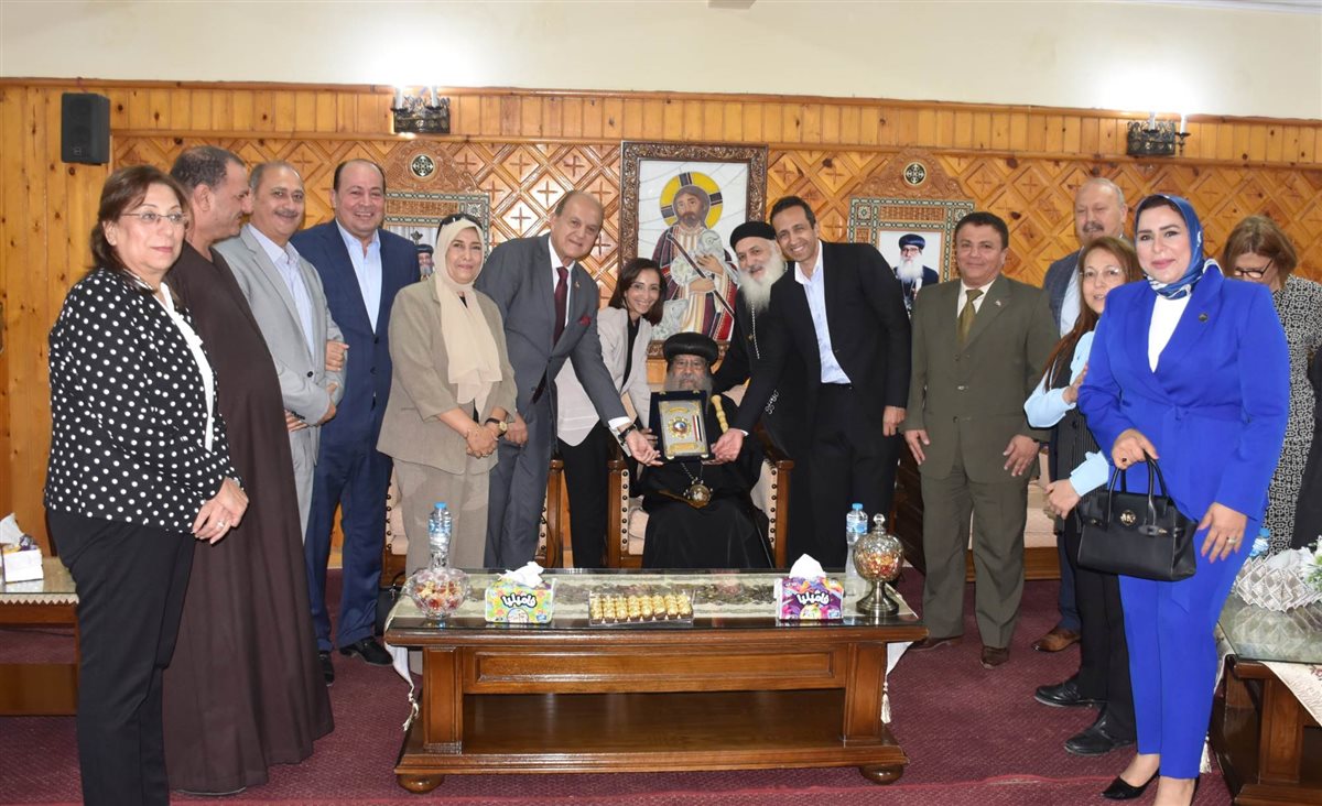 محافظ البحيرة تكرم الأنبا باخوميوس وتهديه درع المحافظة