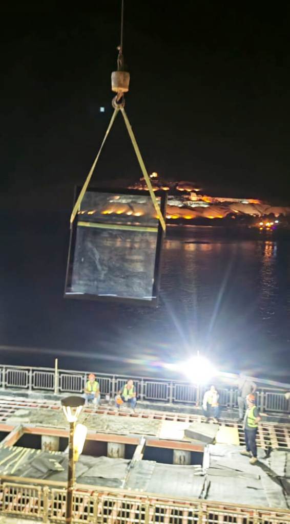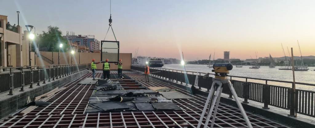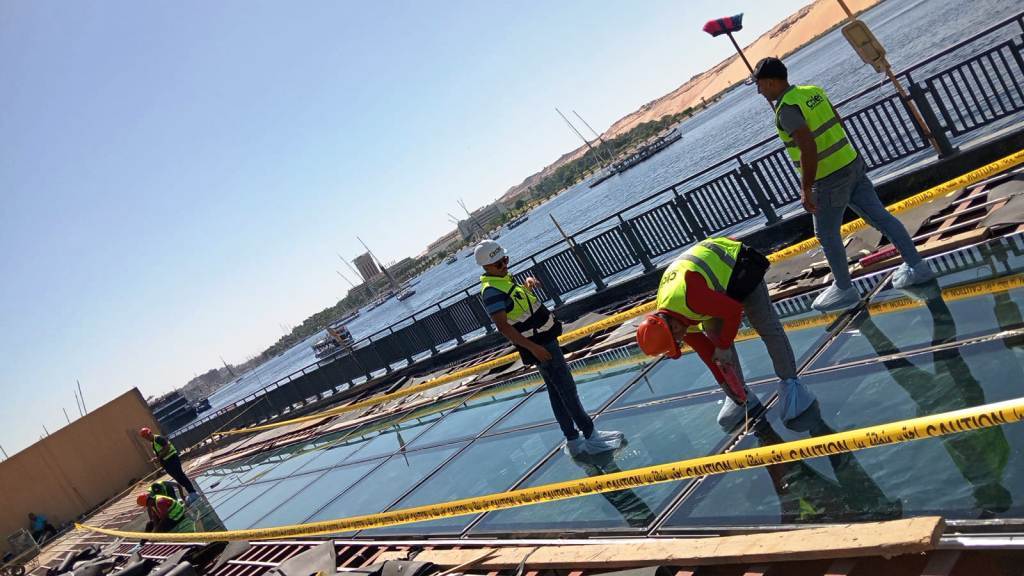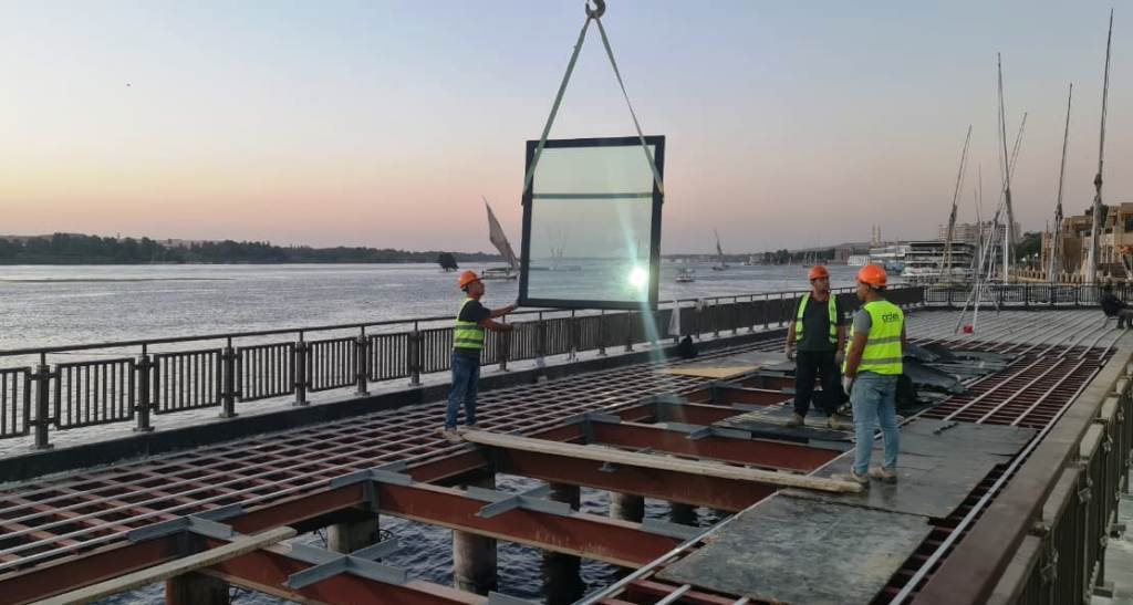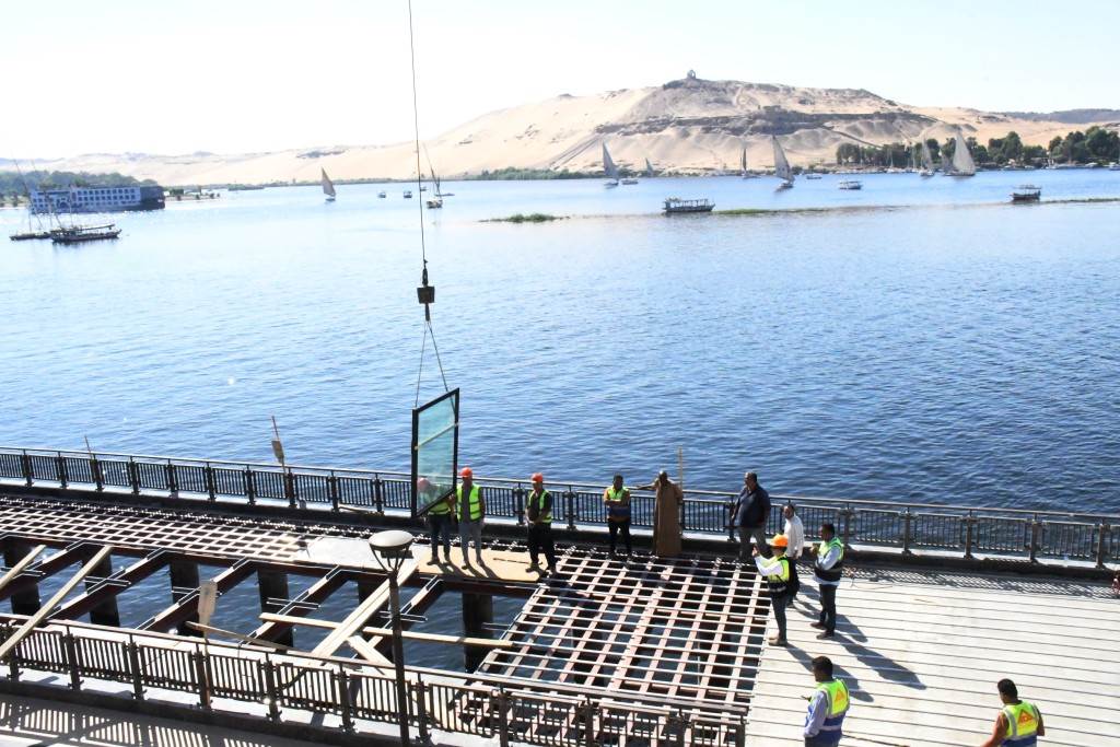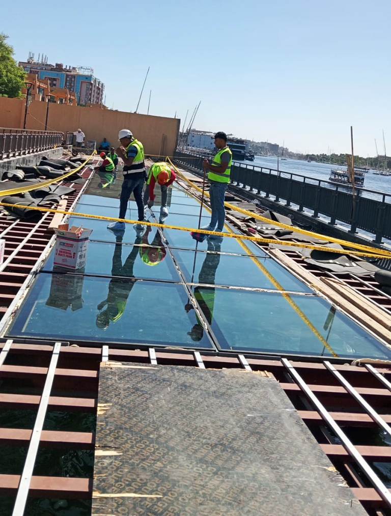 تابع دكتور إسماعيل كمال محافظ أسوان أعمال تركيب الممشى الزجاجي بالمستوى الثالث لمشروع ممشى أهل مصر بكورنيش النيل القديم