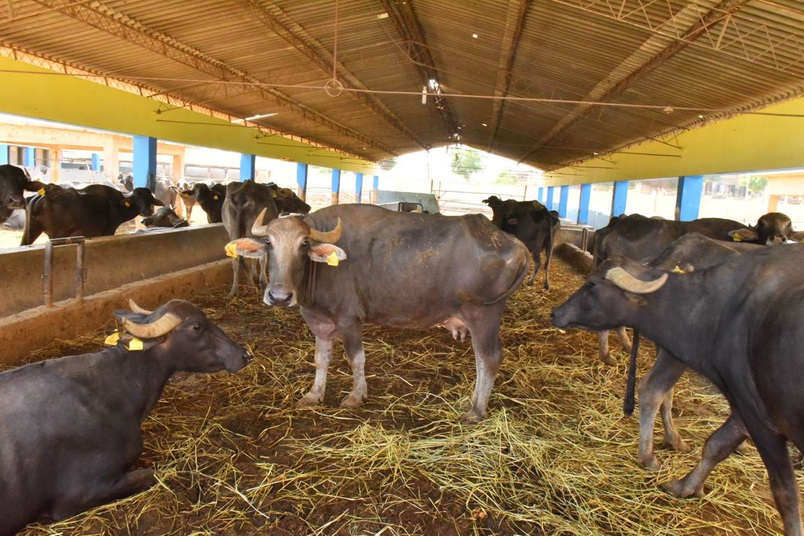 واستكمل المحافظ جولاته بالتوجه إلى محطة أبنوب الحمام بمركز أبنوب والمقامة على مساحة 13 فدانا وتابع سير العمل بها وبمعمل الألبان وعنابر الحيوانات ومخازن الأعلاف موجهاً باستغلال الفراغات الموجودة وزيادة عدد العنابر الخاصة بالمواشي وبناء عنابر جديدة واستغلال باقي المساحات وزراعتها بالمحاصيل الحقلية التي تساهم في توفير الأعلاف اللازمة لها لتحقيق الإكتفاء الذاتي بالمزرعة واطمأن على حالة القطيع وعمليات التغذية له لافتاً إلى ضرورة الاهتمام بالتغذية الجيدة والنظافة المستمرة للمحطات واستغلال كافة الإمكانات المتاحة بالمزرعة وإعادة تصنيعها والاستفادة منها موجهاً بتوفير الرعاية البيطرية الدورية للماشية فضلاً عن الدفع بمزيد من العمال لدعم العمل بالمزرعتين.