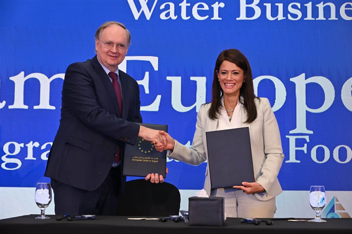 وقد شهد المنتدى الدكتورة رانيا المشاط، وزيرة التخطيط والتنمية الاقتصادية والتعاون الدولي، والسفير كريستيان برجر، رئيس بعثة الاتحاد الأوروبي في مصر، مبادرة "المرفق الأوروبي الأخضر"، تحت مظلة "مبادرة فريق أوروبا"، بحضور وزير الري.