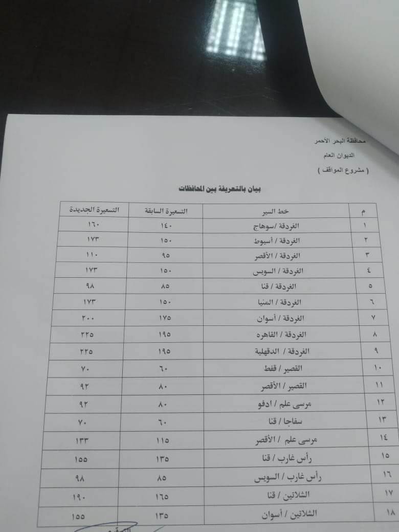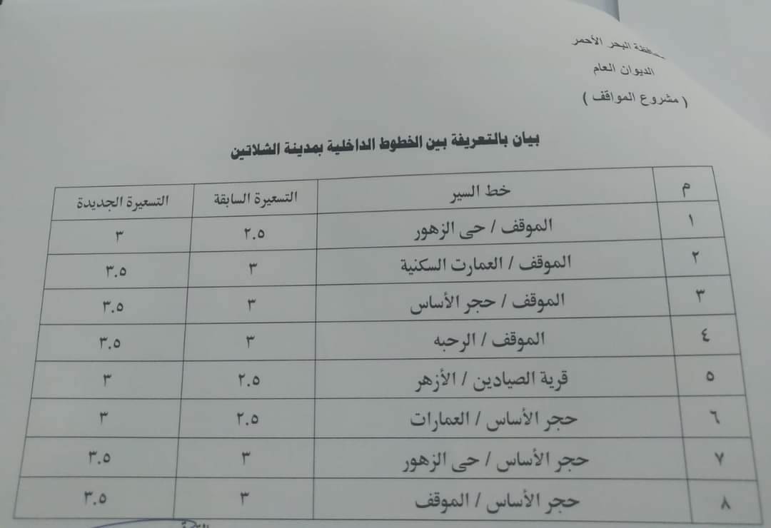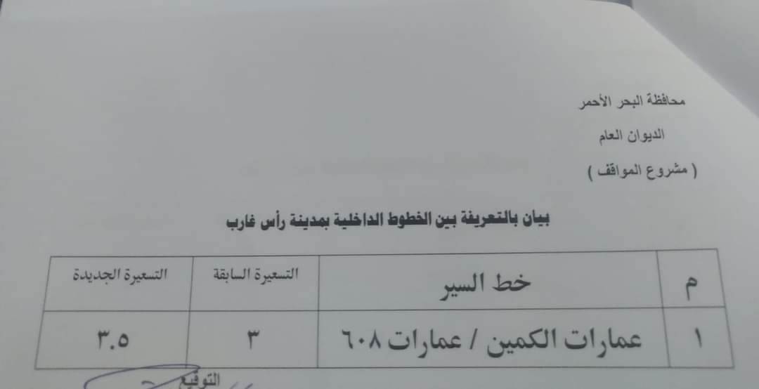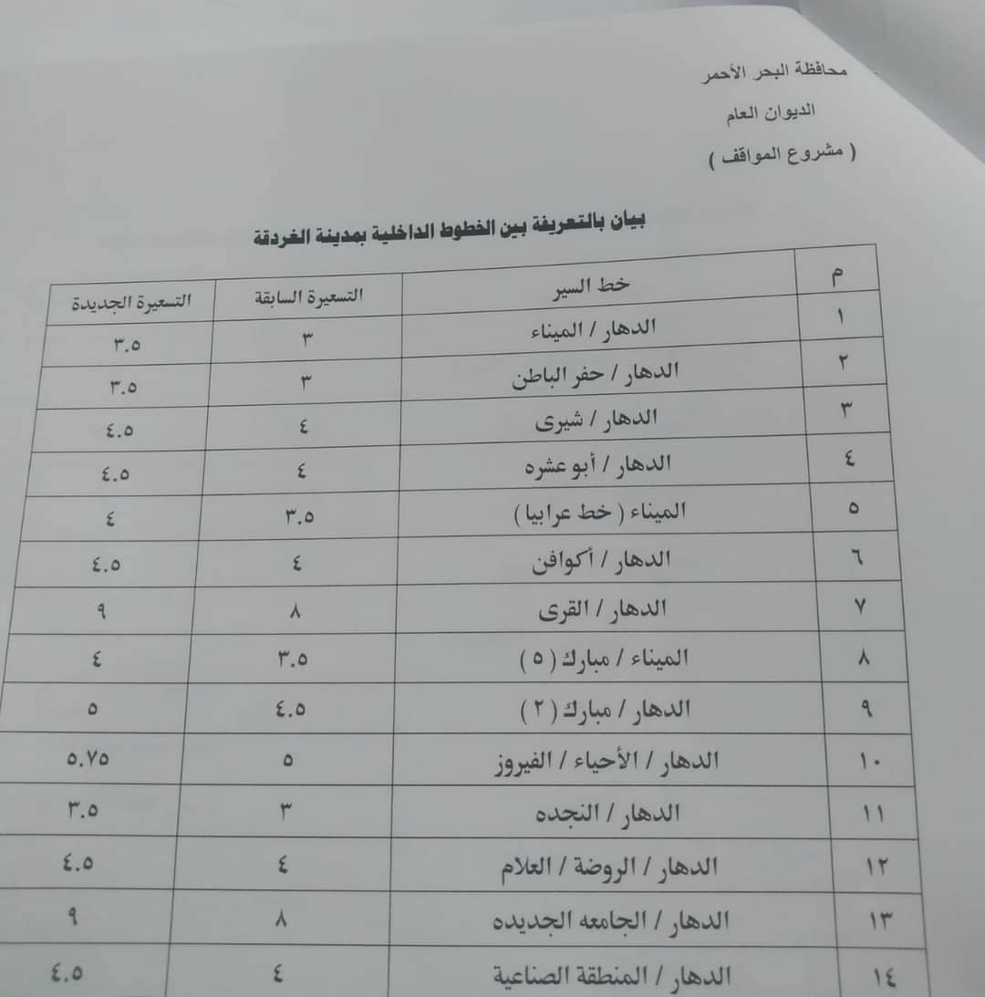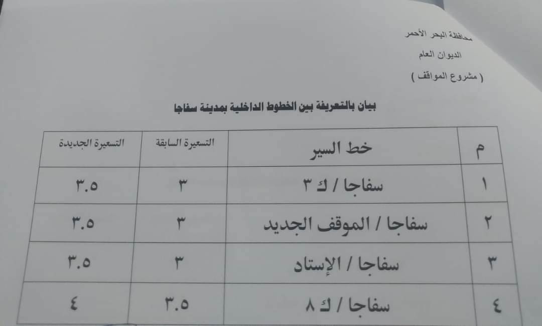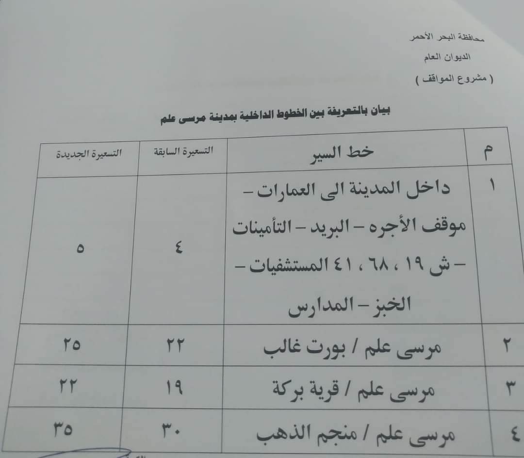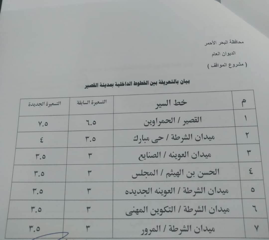 ننشر التسعيرة الجديدة للمواصلات داخل مدن محافظة البحر الأحمر