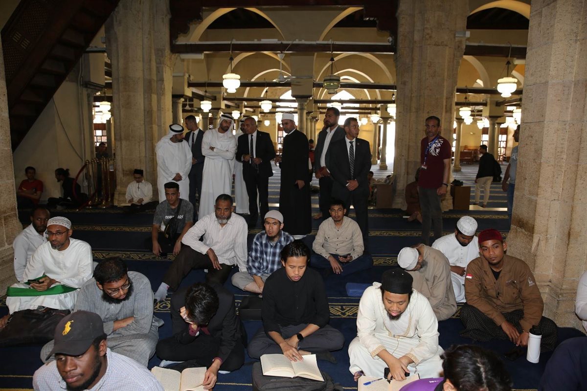 وفي سياق الزيارة، رحب د. عودة بالمبارك والوفد المرافق له، وقدم عرضًا شاملًا لتاريخ الجامع الأزهر، حيث أشار إلى تأسيسه في عام 972 م، ليكون منارة للعلم والمعرفة، كما استعرض دور الأزهر في نشر العلم الشرعي والتصدي للفكر المتطرف وغلق الباب أمام التيارات الفكرية المتشددة، وذلك وفق توجيهات فضيلة الإمام الأكبر الدكتور أحمد الطيب، شيخ الأزهر،