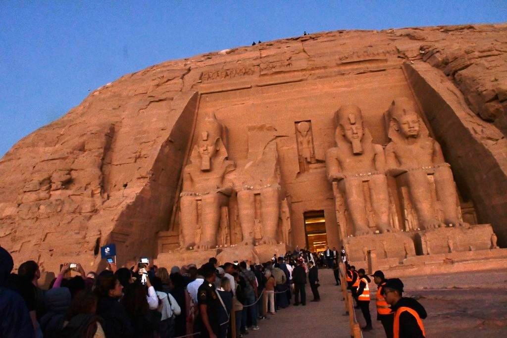 أكد محافظ أسوان إسماعيل كمال ، أن ظاهرة تعامد الشمس على وجه تمثال الملك رمسيس الثانى بمدينة أبو سمبل السياحية جنوب أسوان، شهدت اليوم إقبال وتوافد كبير، تجاوز حتى الان 4 آلاف شخص من المصريين والسائحين الأجانب، من بينهم 1400 سائح وزائر قدموا من محافظة أسوان، بالإضافة إلى 2600 سائح عبر التفويج السياحى البرى من المحافظات المجاورة، فى ظل نجاح جهود الدولة فى الترويج للظاهرة الفلكية الفريدة التي يتكرر حدوثها مرتان خلال العام إحداهما يوم 22 أكتوبر والآخرى يوم 22 فبراير.