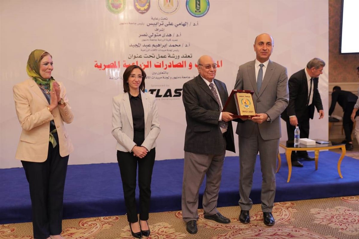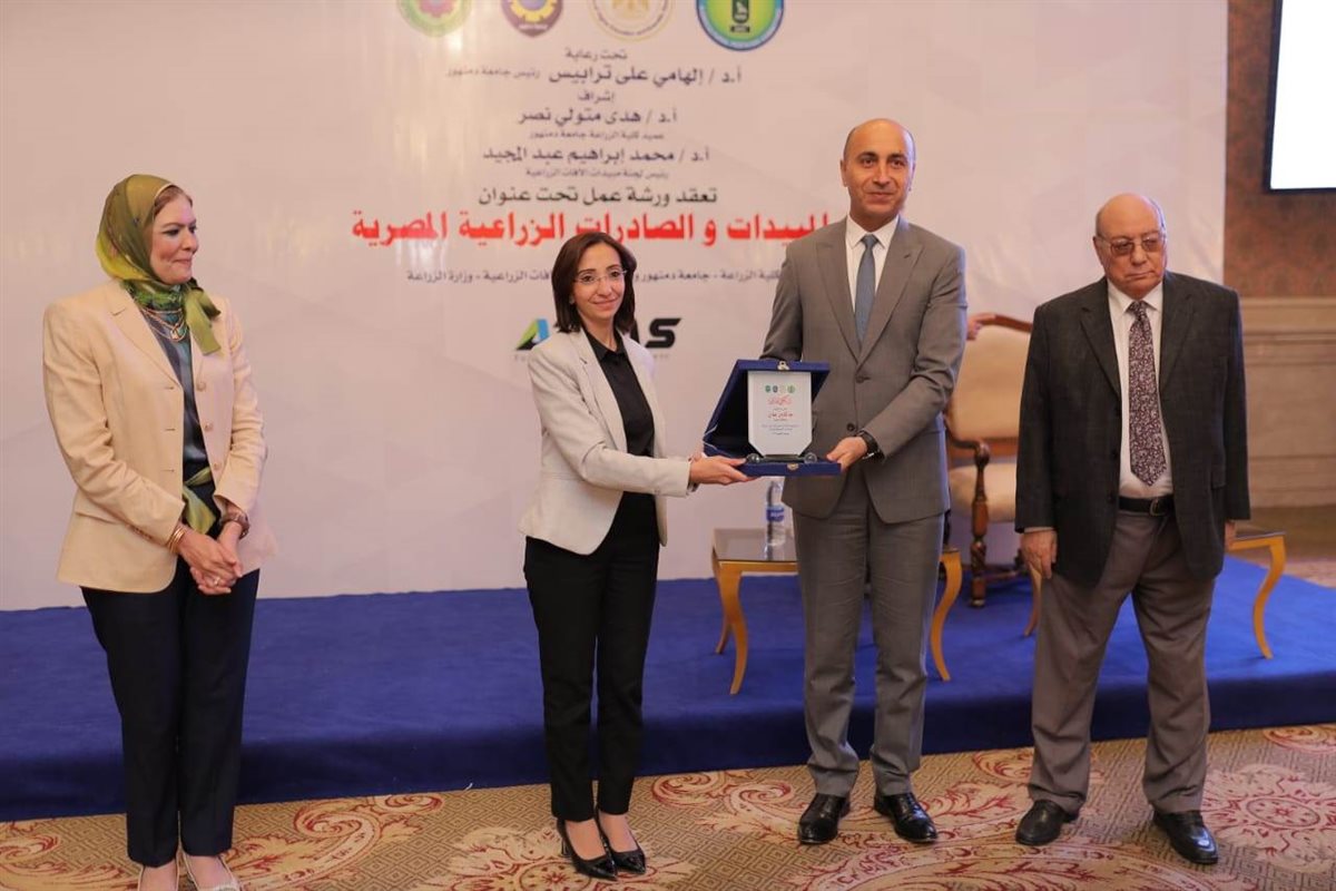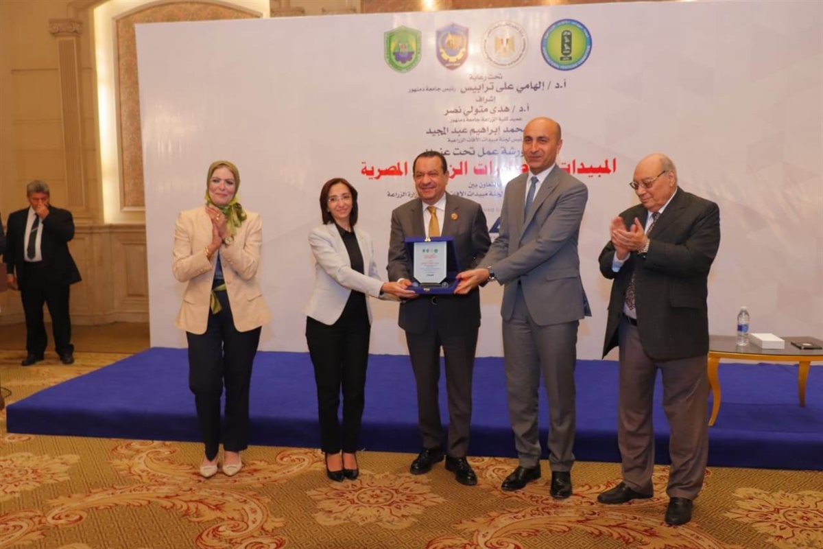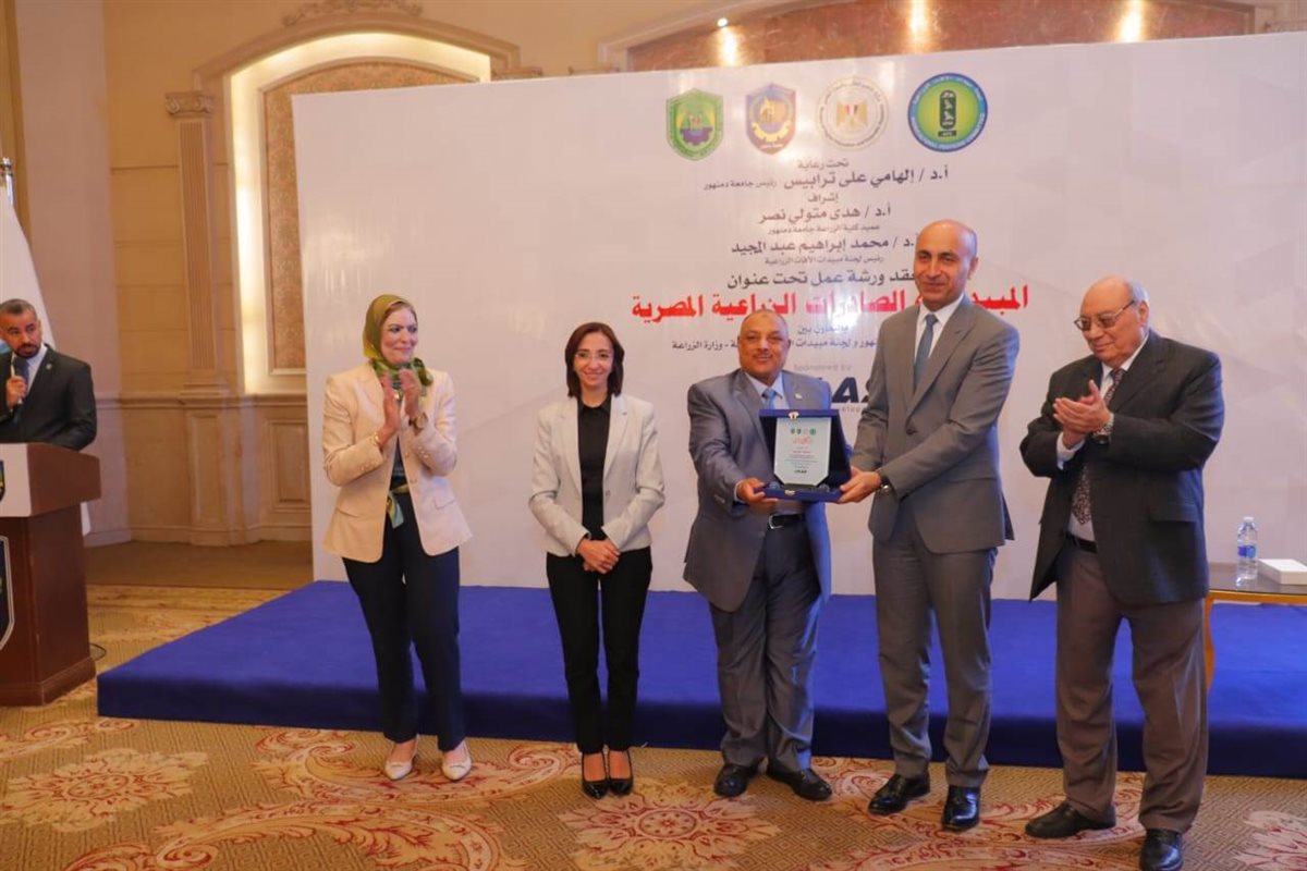 وفى ختام ورشة عمل المبيدات والصادرات الزراعية المصرية، أهدى رئيس جامعة دمنهور درعاً تذكارياً للدكتورة جاكلين عازر محافظ البحيرة، والأستاذ الدكتورة هدى متولي عميد كلية الزراعة، كما أهدى درع الجامعة للأستاذ الدكتور محمد عبدالمجيد رئيس لجنة المبيدات والآفات الزراعية، تقديرا لجهودهم وتعاونهم المثمر، كما قام بتكريم نخبة من ألمع الشخصيات في المجال الزراعي تقديرالإسهاماتهم في النهوض بالإنتاج الزراعي المصري للوفاء بالاحتياجات المحلية وتصدير المنتجات الزراعية ذات السمعة العالمية دعماً للاقتصاد القومي.والجدير بالذكر أن ورشة عمل "المبيدات والصادرات الزراعية المصرية"، شهدت حضور كوكبة من ألمع الشخصيات المؤثرة في المجال الزراعي منهم الدكتور أيمن أبوحديد ـ وزير الزراعة الأسبق، الدكتورة سعد نصار محافظ الفيوم الأسبق أستاذ الاقتصاد الزراعي بجامعة القاهرة ورئيس مركز البحوث الزراعية، اللواء هشام الحصري رئيس لجنة الزراعة والري بمجلس النواب، وعبدالسلام الجبلي رئيس لجنة الزراعة والري بمجلس الشيوخ، وعدد كبير من الشخصيات المؤثرة في المجال الزراعي، بتنظيم رائع لأسرة طلاب من أجل مصر بجامعة دمنهور.