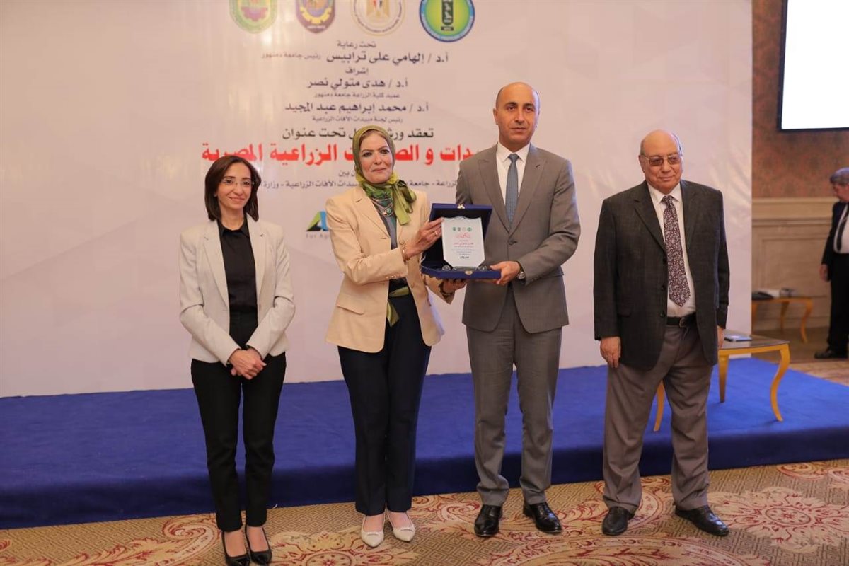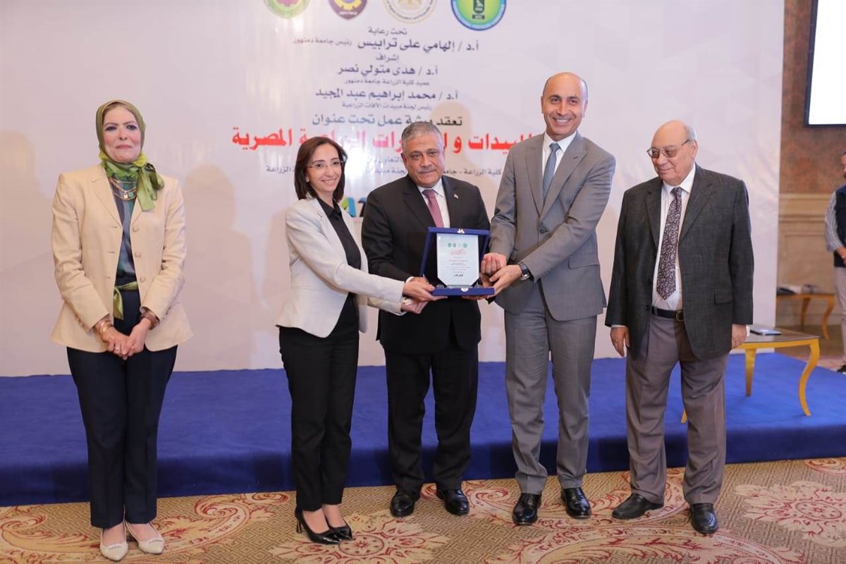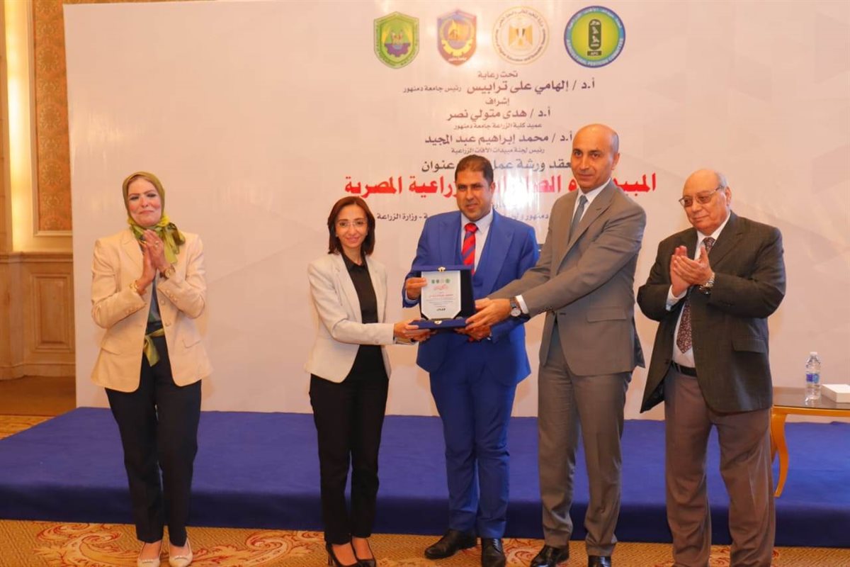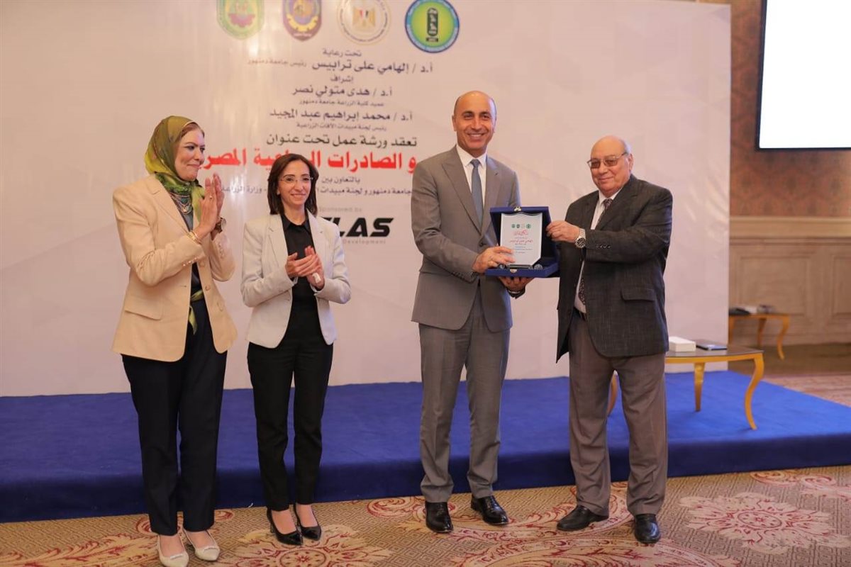وفى ختام ورشة عمل المبيدات والصادرات الزراعية المصرية، أهدى رئيس جامعة دمنهور درعاً تذكارياً للدكتورة جاكلين عازر محافظ البحيرة، والأستاذ الدكتورة هدى متولي عميد كلية الزراعة، كما أهدى درع الجامعة للأستاذ الدكتور محمد عبدالمجيد رئيس لجنة المبيدات والآفات الزراعية، تقديرا لجهودهم وتعاونهم المثمر، كما قام بتكريم نخبة من ألمع الشخصيات في المجال الزراعي تقديرالإسهاماتهم في النهوض بالإنتاج الزراعي المصري للوفاء بالاحتياجات المحلية وتصدير المنتجات الزراعية ذات السمعة العالمية دعماً للاقتصاد القومي.والجدير بالذكر أن ورشة عمل "المبيدات والصادرات الزراعية المصرية"، شهدت حضور كوكبة من ألمع الشخصيات المؤثرة في المجال الزراعي منهم الدكتور أيمن أبوحديد ـ وزير الزراعة الأسبق، الدكتورة سعد نصار محافظ الفيوم الأسبق أستاذ الاقتصاد الزراعي بجامعة القاهرة ورئيس مركز البحوث الزراعية، اللواء هشام الحصري رئيس لجنة الزراعة والري بمجلس النواب، وعبدالسلام الجبلي رئيس لجنة الزراعة والري بمجلس الشيوخ، وعدد كبير من الشخصيات المؤثرة في المجال الزراعي، بتنظيم رائع لأسرة طلاب من أجل مصر بجامعة دمنهور.