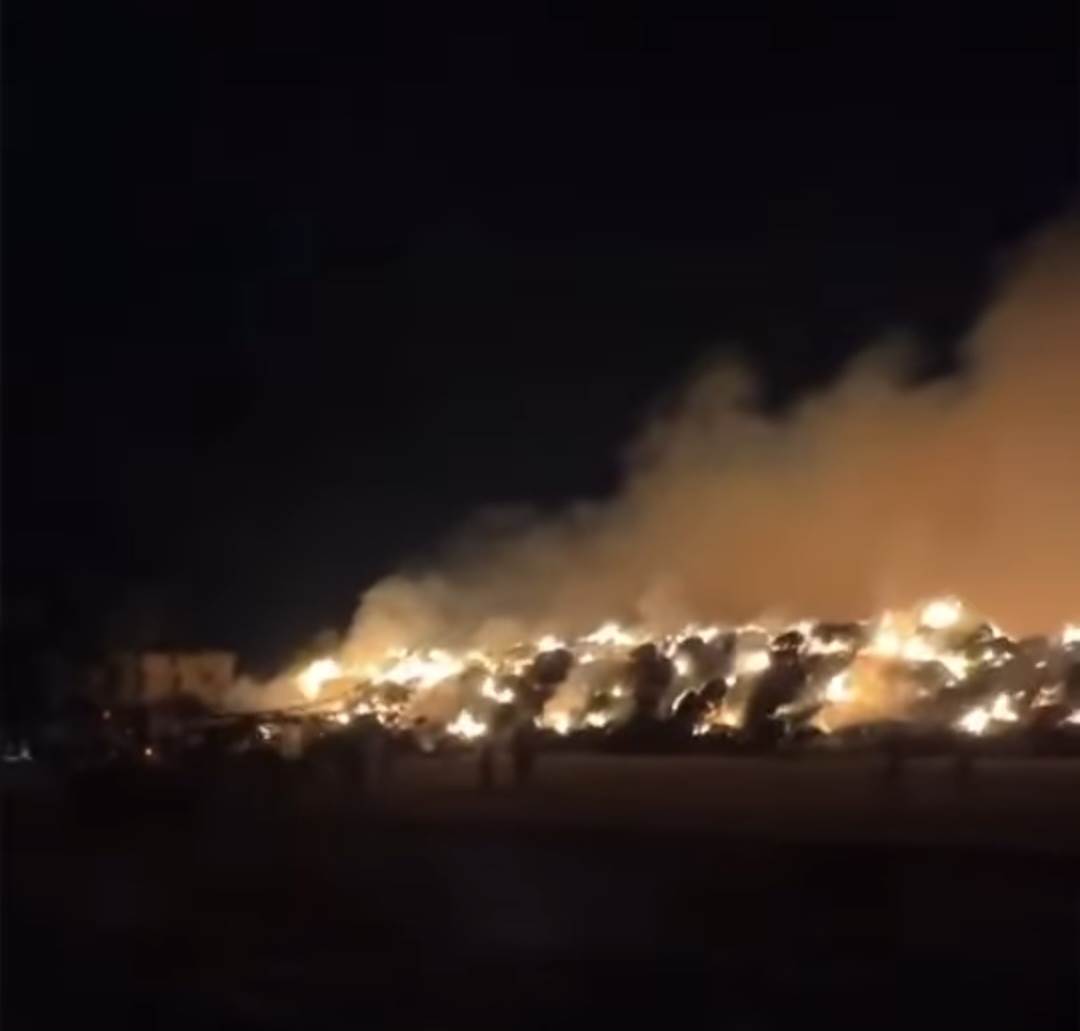 وبالمعاينة والفحص تبين نشوب حريق هائل بداخل جرن خاص بتخزين قش الأرز ملك "مصطفى العليمى"، وامتدت النيران إلى مخزن للبصل، وتسبب الحريق فى إتلاف حوالي 5000 طن بصل، وكمية كبيرة من قش الأرز والمعدات الزراعية الخاصة بتصنع قش الأرز الموجودة داخل الجرن دون خسائر بشرية.