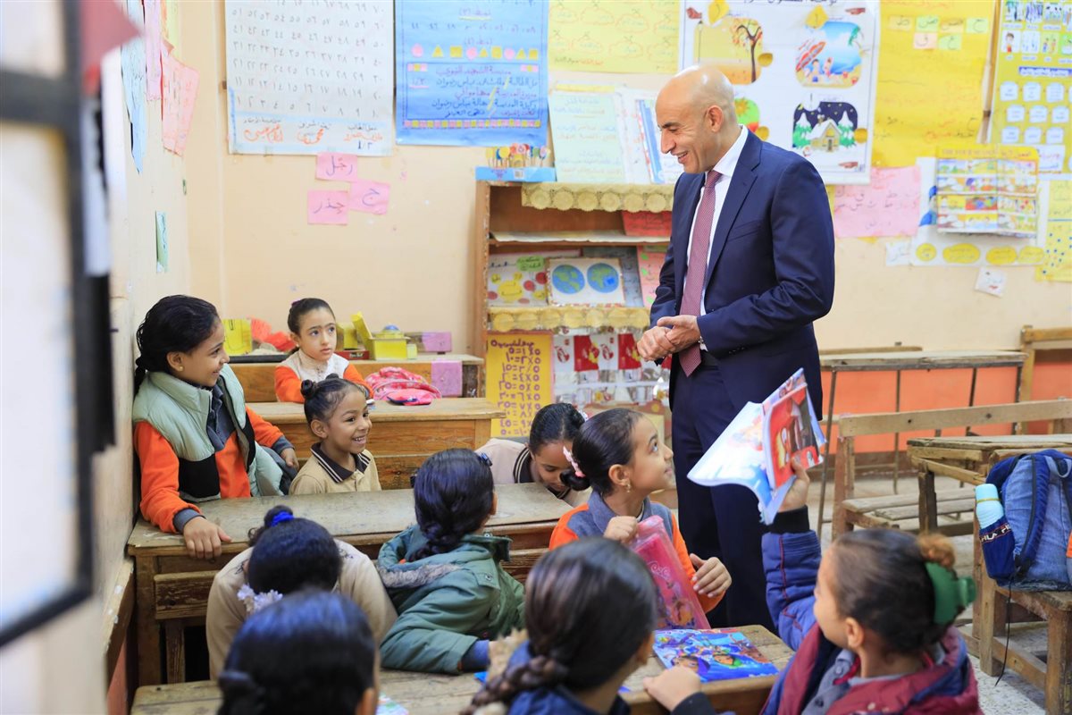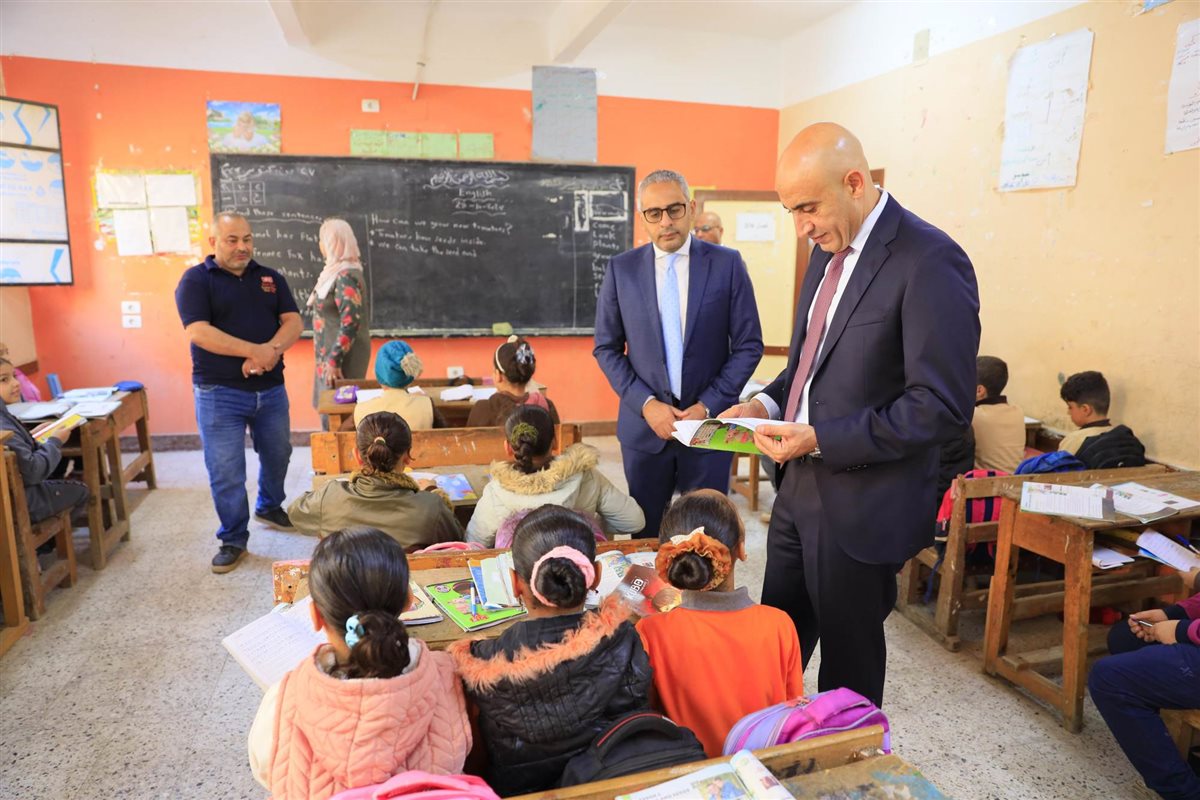 وحرص الوزير على التأكد من الالتزام بالكثافات الطلابية وآليات تطبيق الاختبارات الشهرية، ومتابعة مستوى الطلاب في القراءة والكتابة، كما تابع مع عدد من الطلاب كراسات الحصة والواجبات المدرسية ومستواهم في القراءة.