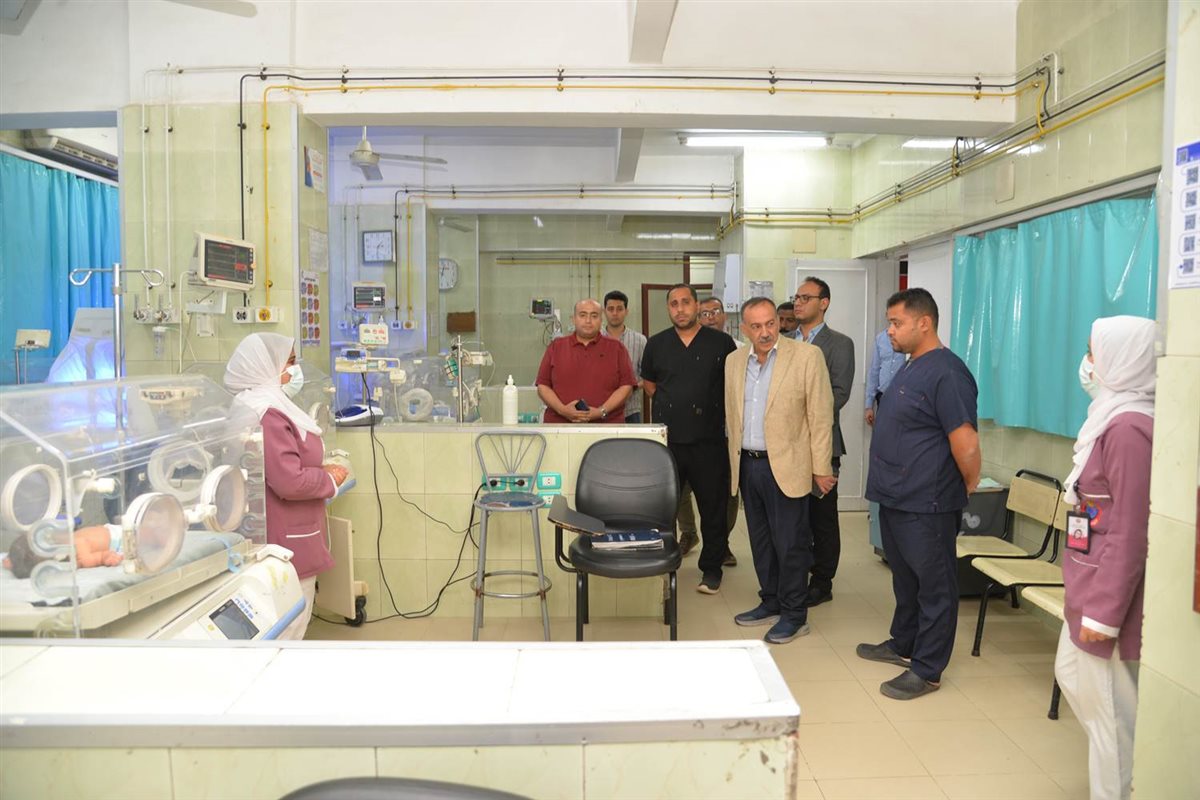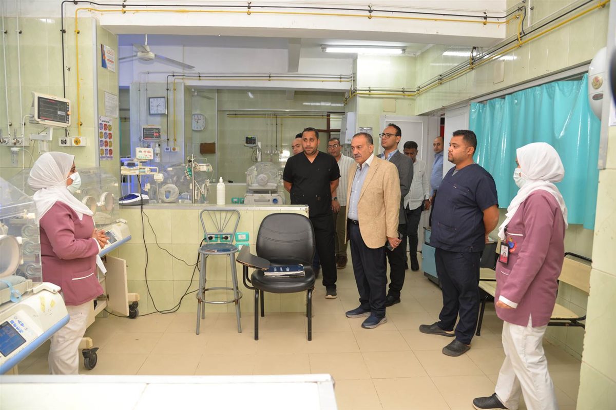 واستكمل المحافظ جولته بتفقد وحدة الكلى الصناعي وتفقد وحدة المياه الخاصة بها كما تفقد غرفة أجهزة الغسيل الكلوى التي تضم 39 جهاز وتفقد أيضاً وحدة الأطفال المبتسرين التي تضم 21 حضانة منهم واحدة معطلة ووجه بسرعة إصلاحها.