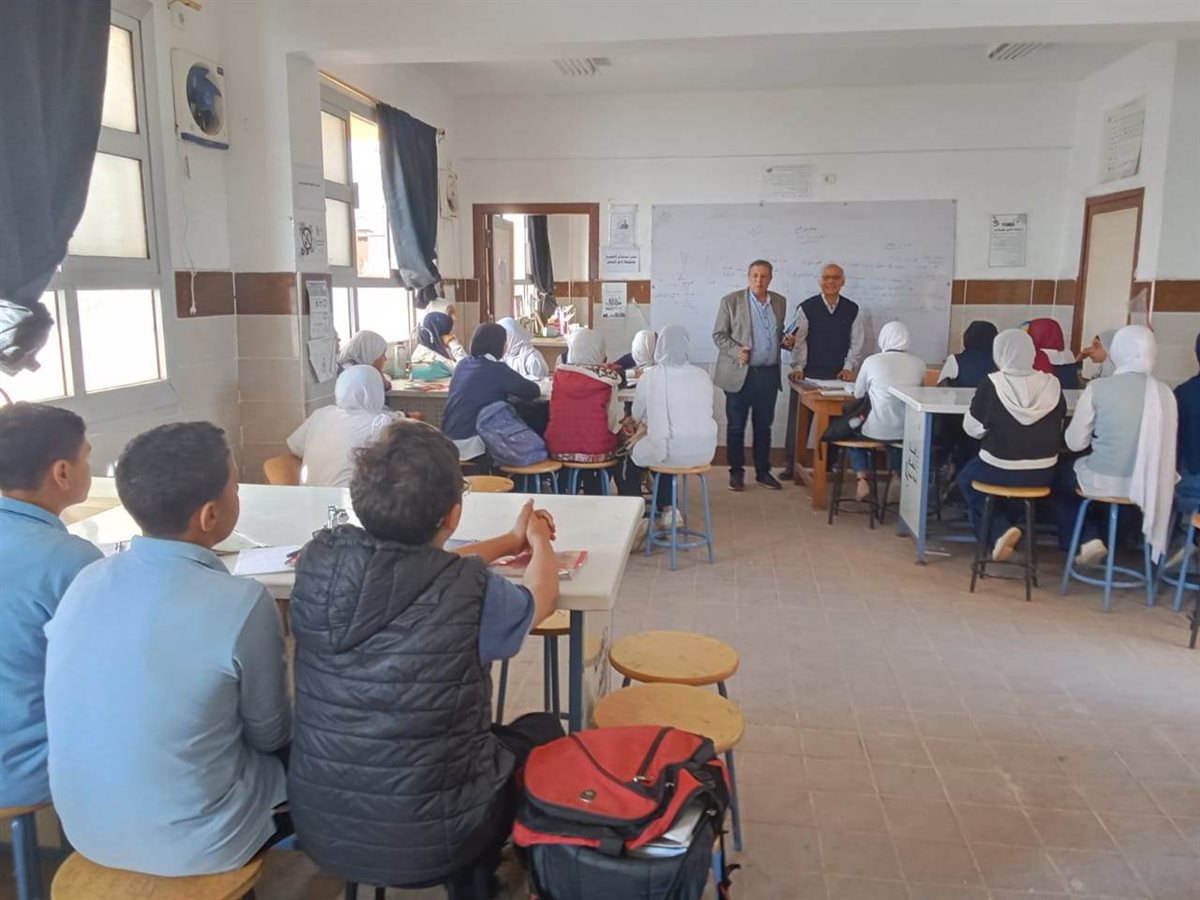قام بمتابعة الفصول الدراسية واطلع على طبيعة الكثافة الطلابية بالمدرسة كما حرص خلال تفقده المدرسة على التعرف على مستوى قراءة الطلاب للدروس والاطلاع على كراسات الحصة والواجب وتفقد غرف الانشطة وشدد على اهمية وضرورة الحفاظ على نظافة الفصول وانتظام المعلمين والطلاب وتفعيل لائحة الانضباط المدرسي ومتابعة عملية تقييم الطلاب لرفع ادائهم ومستواهم المدرسى وكذا تفعيل حصص التقييم الاسبوعى ومتابعة كراسات الحصة والواجبات للطلاب وتنفيذ امتحانات شهر اكتوبر وفقا للضوابط والقرارات الواردة من الوزارةووجه بضرورة التزام المعلمين بالكتابة على السبورة ومتابعة مستوى التلاميذ فى القراءة والكتابة وتفاعلهم داخل الفصول الدراسية وادائهم للتقييمات الاسبوعية لتحقيق اهداف العملية التربوية والتعليمية وتوفير بيئة مدرسية آمنه ومستقرة.