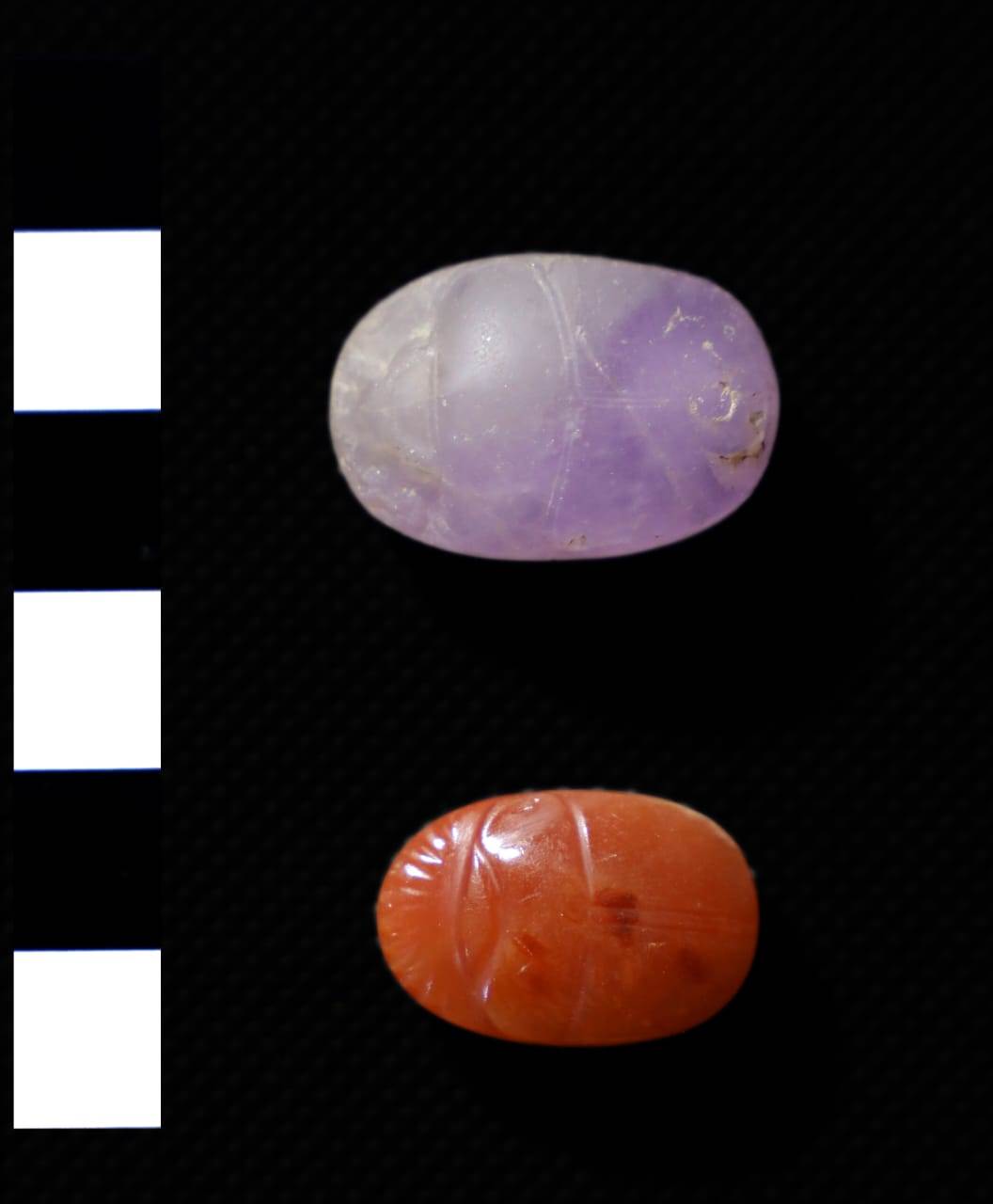 وأشارت الدكتورة كاثرين بلاكني رئيس البعثة الأثرية من الجانب الأمريكي، أنه تم العثور داخل اثنين من هذه الدفنات على مرايا من النحاس أحدهم ذات مقبض على شكل زهرة اللوتس، وأخرى بتصميم نادر لوجه الإلهة حتحور بأربعة وجوه تظهرها كامرأة ذات ملامح صارمة، بالإضافة إلى عدد من سبائك النحاس، وتمثال صغير للخصوبة من حجر الفاينس الأزرق والأخضر وله أرجل مقطوعة، مصمم بشكل جيد ومزين بمجموعة متنوعة من المجوهرات، وشعرها مطلي باللون الأسود، وقد عُثر بجوار التمثال الصغير على ما يقرب من 4000 خرزة طينية تشكل شعرها الأصلي. كما عثر على مائدة قرابين مربعة الشكل مع حافة منخفضة وقناة مياه في المنتصف محاطة بنقوش بارزة لرأس ثور ورغيف خبز وقرابين أخرى.