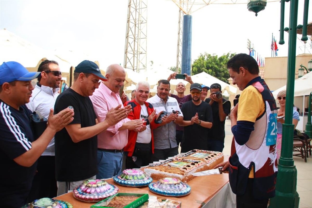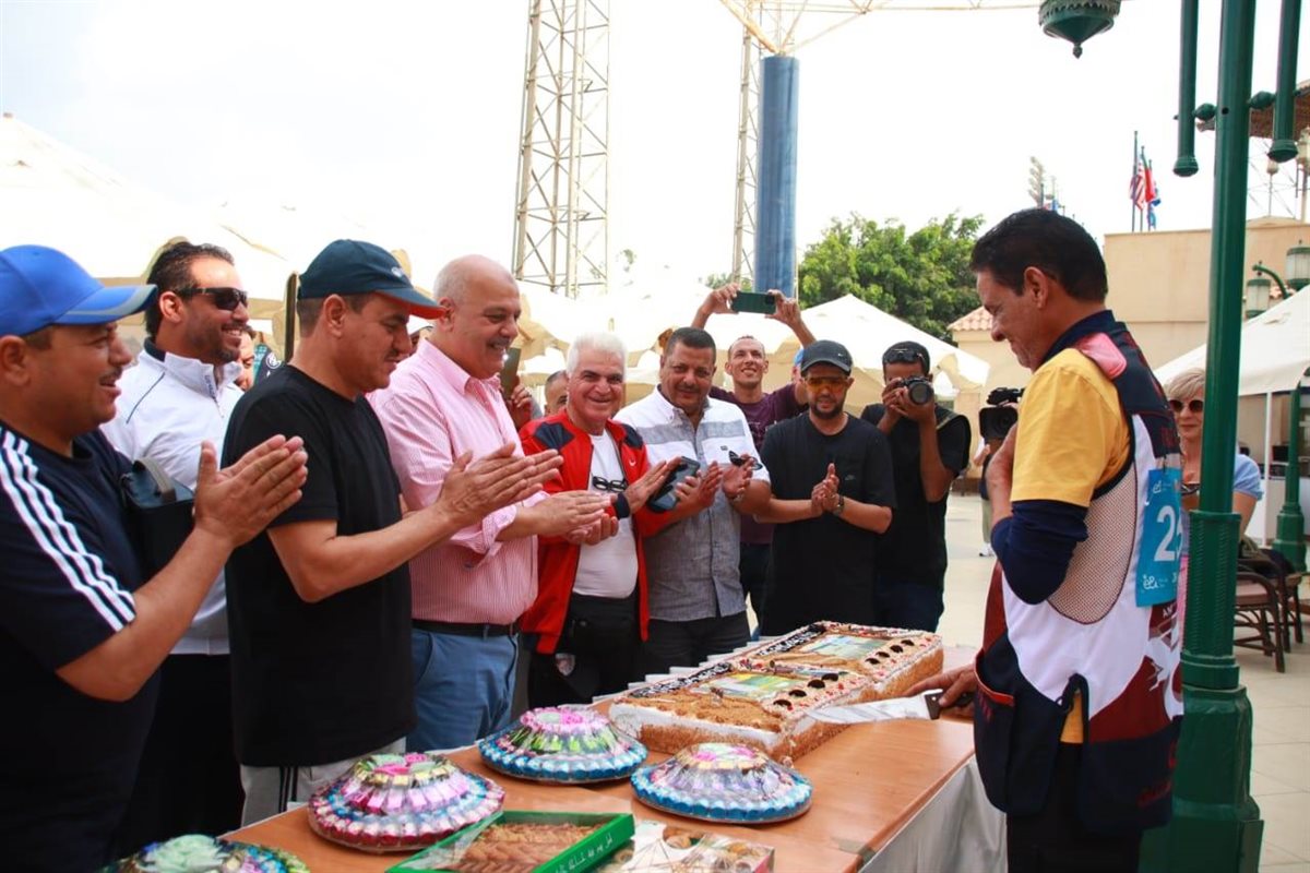 وأحضر أبطال الرماية "تورتة" للاحتفال بتكريم الرامي عبد الشفيع عوض، الذي استطاع تحقيق الميدالية الذهبية على مستوى الرجال في بطولة أفريقيا، وذلك للتعبير عن حبهم.