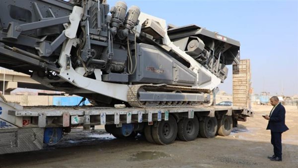 وصول أول كسارة لإعادة تدوير مخلفات الهدم لموقع العمل بأرض المطار