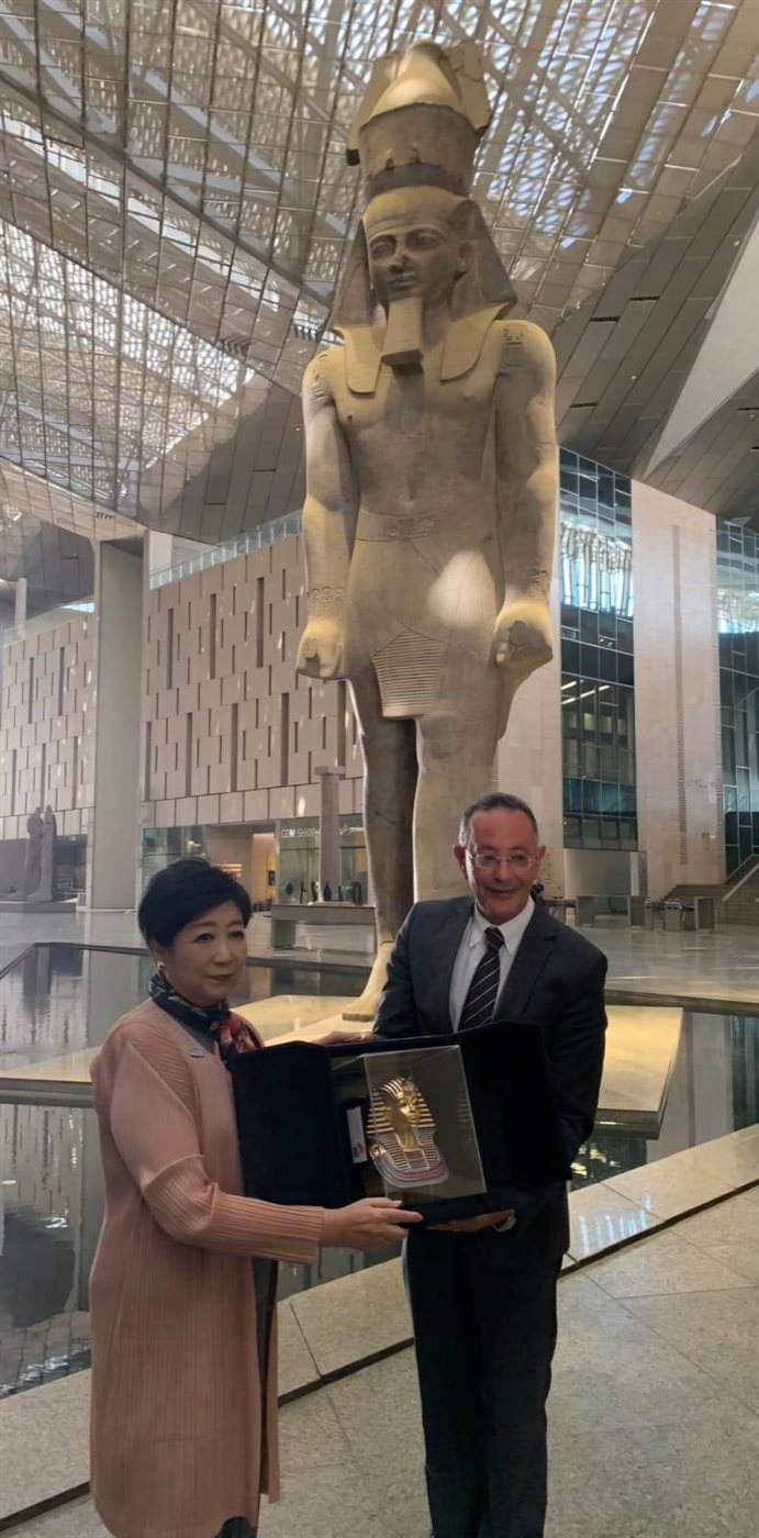 كما توجهت عمدة طوكيو، بالتهنئة للدكتور أحمد غنيم؛ على التشغيل التجريبي للمتحف، الذي طال انتظاره، معربة عن تطلعها لافتتاح قاعات توت عنخ آمون قريباً، معربة عن إعجابها بالمتحف وسيناريو العرض المتحفي المميز للقطع الأثرية المعروضة به، بالإضافة إلى التجوال والانتقال السلس بين قاعات العرض الرئيسية، بما يحقق النجاح المرجو من تجربة الزائر للمتحف.