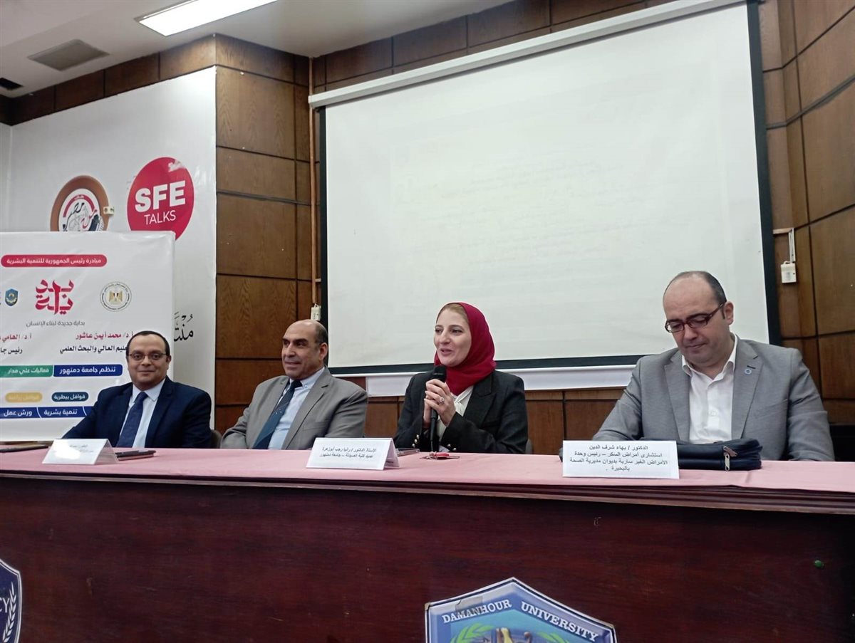 نظمت كلية الصيدلة بجامعة دمنهور بالتنسيق مع مديرية الصحة بالبحيرة اليوم الاحد ندوة توعوية بعنوان "كيفية وأهمية الاكتشاف المبكر لمرض السكر وطرق الوقاية" في إطار الاحتفال باليوم العالمي للسكري وانطلاقاً من حرص جامعة دمنهور برئاسة الأستاذ الدكتور إلهامي ترابيس على تفعيل المشاركة في المبادرات الرئاسية المتعددة، والتعاون والتنسيق مع مؤسسات المجتمع المختلفة بما يخدم المجتمع.وبإشراف الأستاذ الدكتورة منى مبروك قائم بعمل نائب رئيس الجامعة لشؤون خدمة المجتمع وتنمية البيئة، وانطلاقاً من المشاركة والمسؤولية المجتمعية للقطاع في المشاركة في تنفيذ مبادرتي بداية جديدة لبناء الإنسان، و100 يوم صحة.