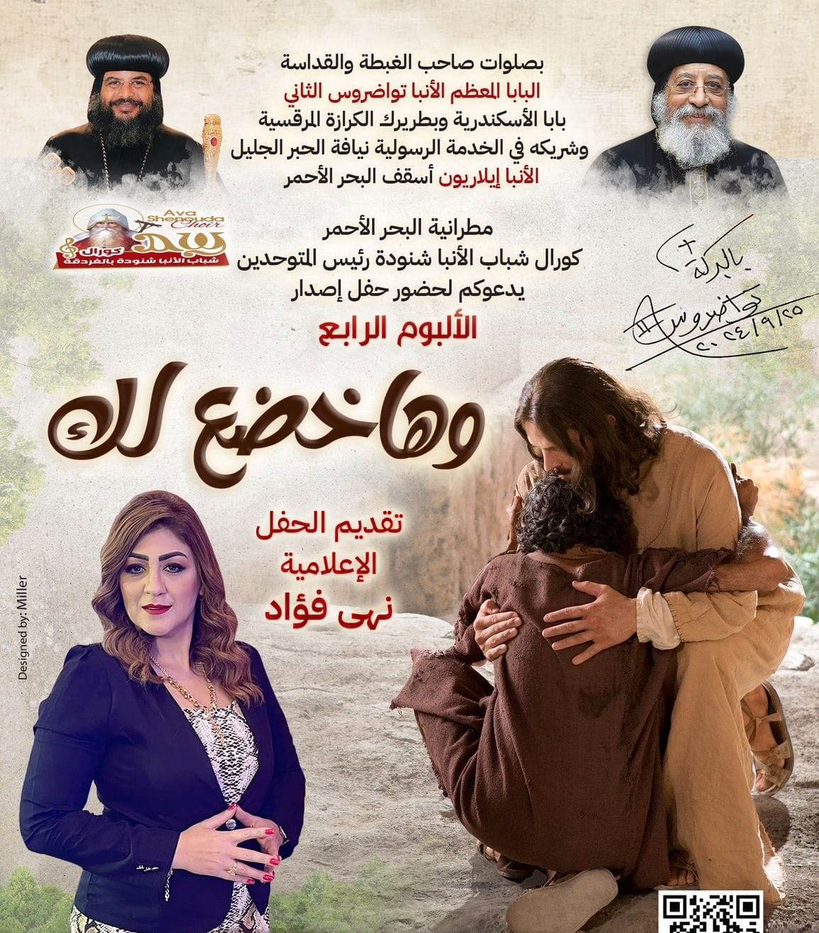 يشهد مسرح الأنبا رويس بالكاتدرائية المرقسية بالعباسية، يوم الجمعة 29 نوفمبر، احتفاية كبرى لكورال شباب الأنبا شنودة بالغردقة لإطلاق ألبومه الرابع تحت شعار “وهاخضع لك“.