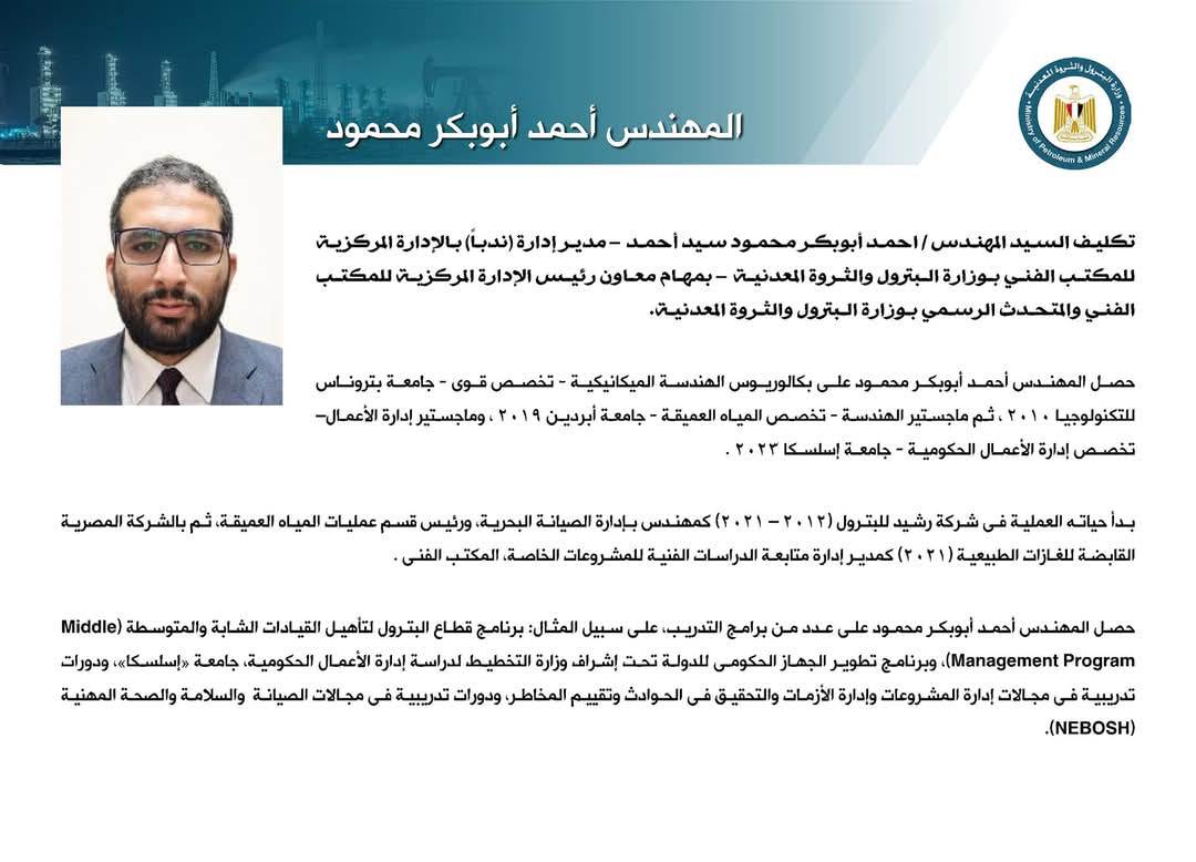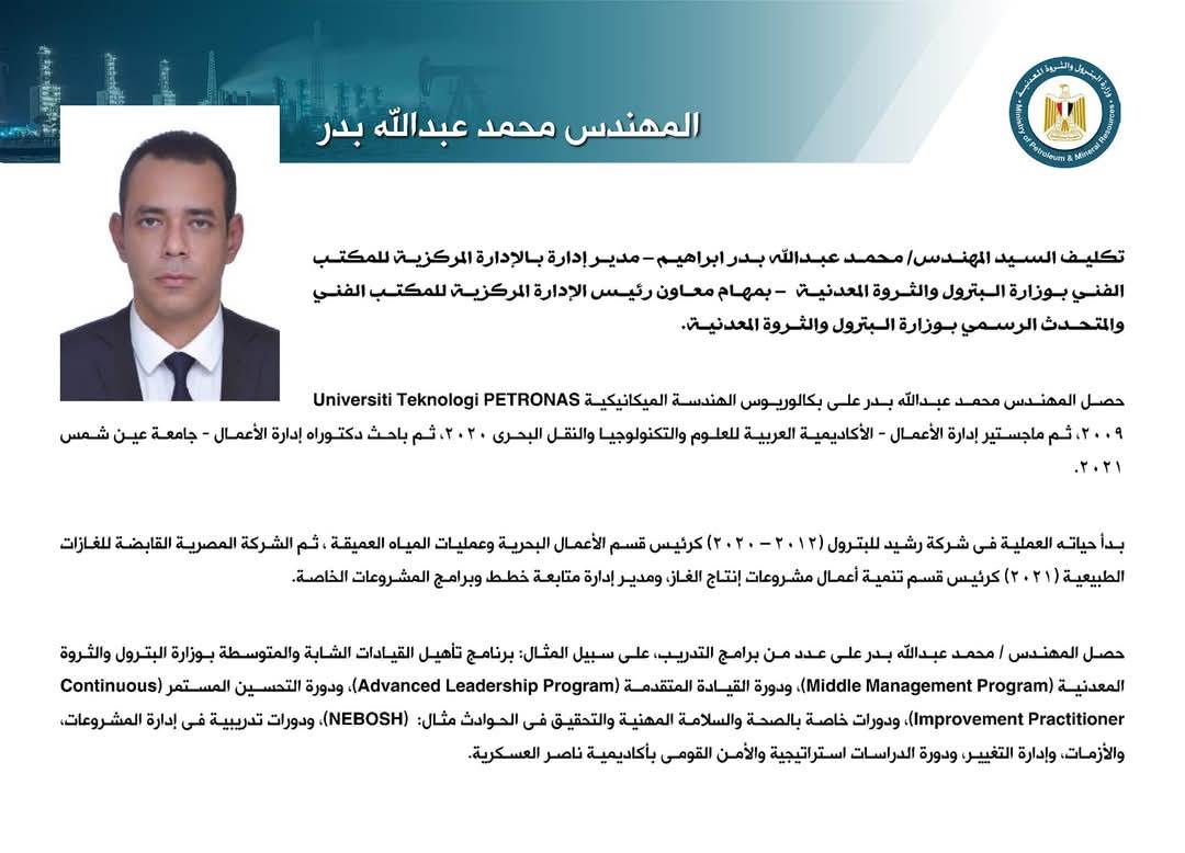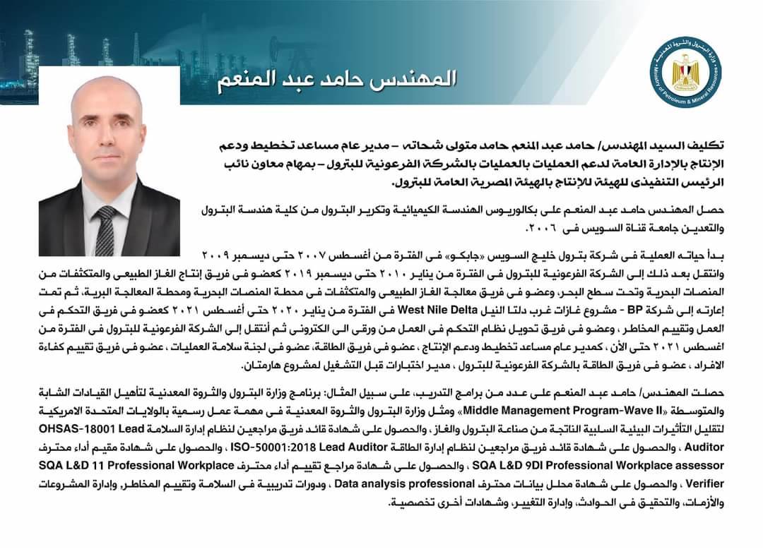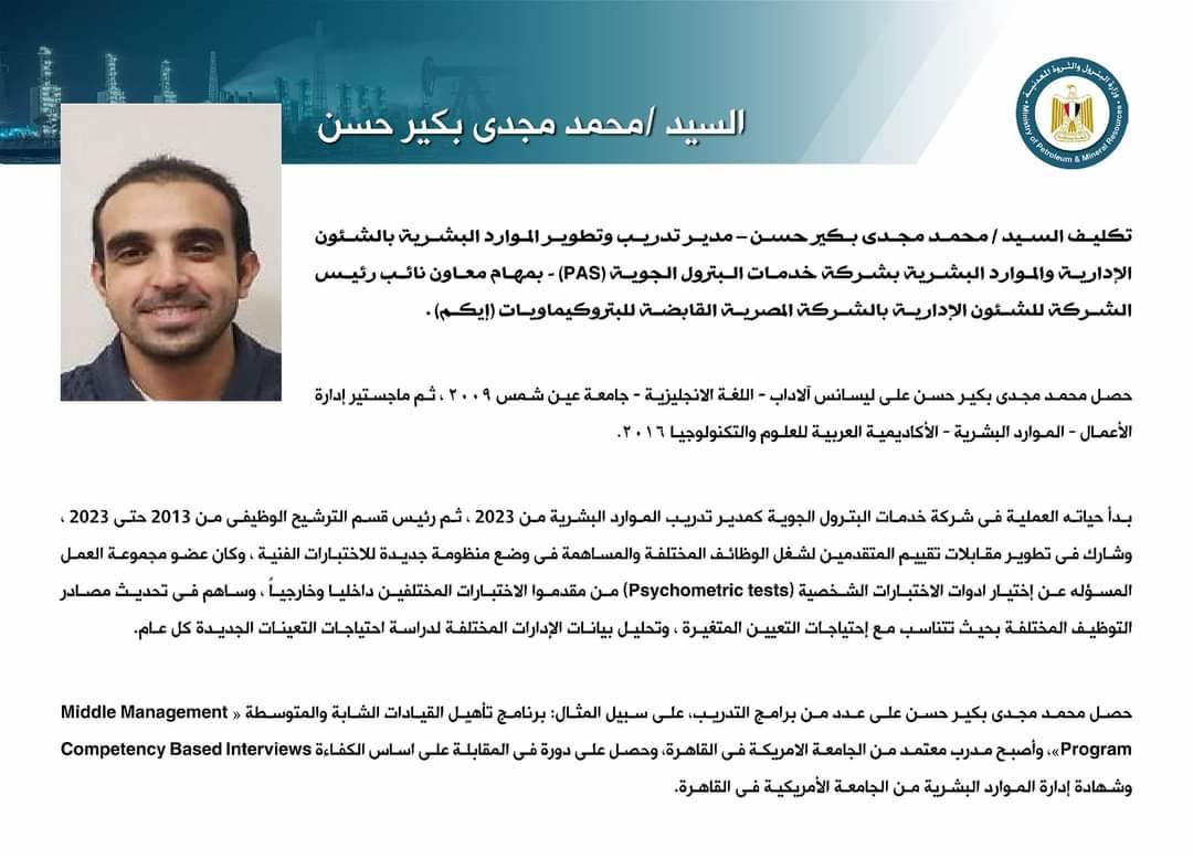 في ضوء استراتيجية وزارة البترول والثروة المعدنية لتعظيم الاستفادة المثلى من الكوادرالبشرية بالقطاع وإيمانها الراسخ بأهمية العنصر البشرى كونه الثروة الحقيقية للقطاع وباعتباره عنصراً هاماً ومحركاً أساسياً للتنمية الشاملة والمستدامة وبما يضمن نقل الخبرات واستدامة الأداء، واستكمالاً لمبادرة الملازمة Work Shadowing التي تم إطلاقها في وقت سابق، أصدر المهندس كريم بدوي وزير البترول والثروة المعدنية قراراً بتكليف ١٦ من خريجي برنامج القيادات الشابة والمتوسطة للقيام بمهام معاونى القيادات بوزارة البترول والثروة المعدنية والهيئة المصرية العامة للبترول والشركات القابضة.