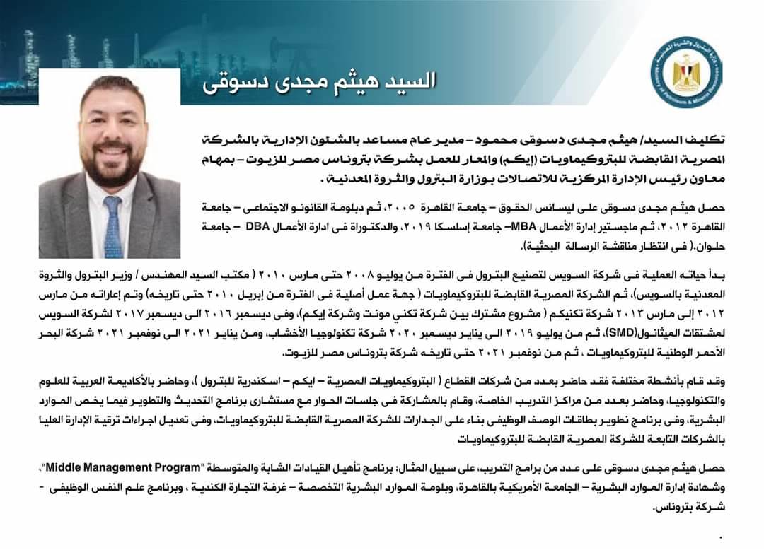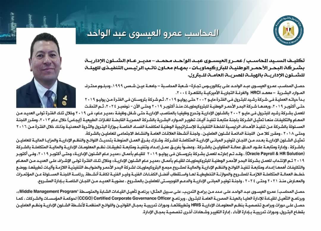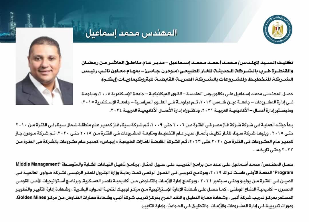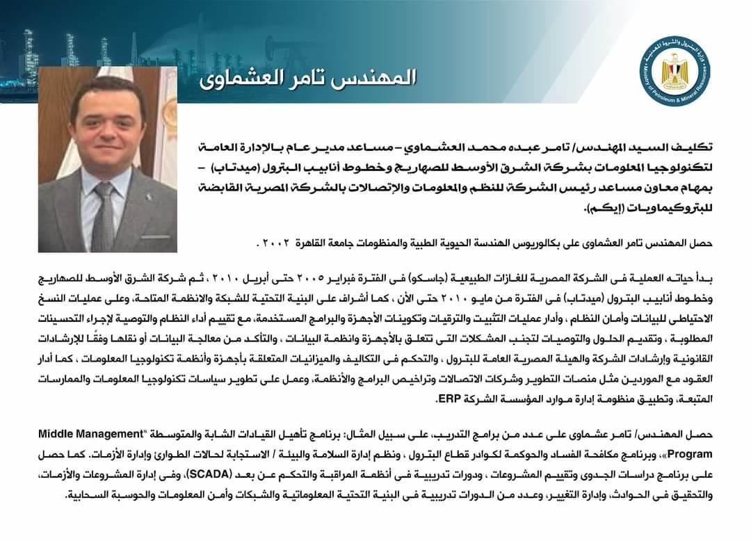 في ضوء استراتيجية وزارة البترول والثروة المعدنية لتعظيم الاستفادة المثلى من الكوادرالبشرية بالقطاع وإيمانها الراسخ بأهمية العنصر البشرى كونه الثروة الحقيقية للقطاع وباعتباره عنصراً هاماً ومحركاً أساسياً للتنمية الشاملة والمستدامة وبما يضمن نقل الخبرات واستدامة الأداء، واستكمالاً لمبادرة الملازمة Work Shadowing التي تم إطلاقها في وقت سابق، أصدر المهندس كريم بدوي وزير البترول والثروة المعدنية قراراً بتكليف ١٦ من خريجي برنامج القيادات الشابة والمتوسطة للقيام بمهام معاونى القيادات بوزارة البترول والثروة المعدنية والهيئة المصرية العامة للبترول والشركات القابضة.