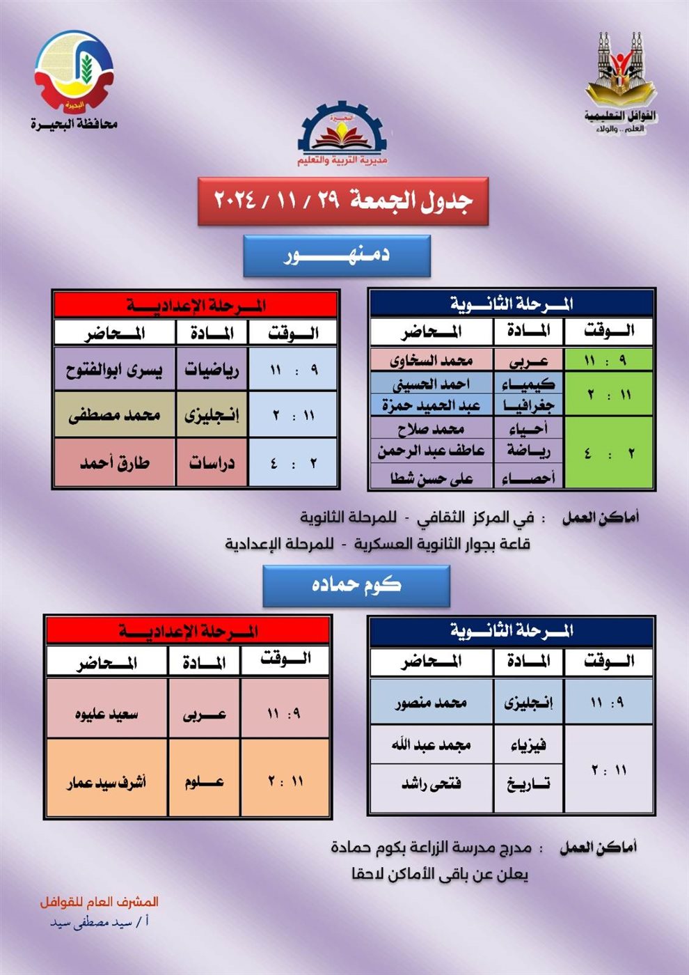 أعلنت مديرية التربية والتعليم بالبحيرة انطلاق القوافل التعليمية بمحافظة البحيرة بمركزي دمنهور وكوم حمادة لطلاب الشهادتين الإعدادية والثانوية، بداية من الجمعة القادمة، وذلك لخدمة أبنائنا الطلاب في تلك المراكز والمراكز المجاورة.