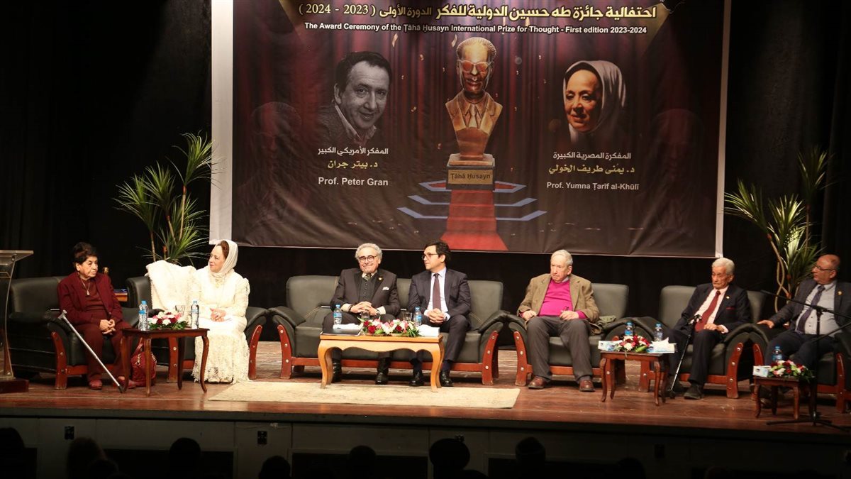 منحت جائزة "طه حسين الدولية للفكر" لكل من: "المؤرخ بيتر جران، أستاذ التاريخ المصري بجامعة تمبل الأمريكية- والدكتورة يمنى طريف الخولي، أستاذ فلسفة العلوم بكلية الآداب بجامعة القاهرة".