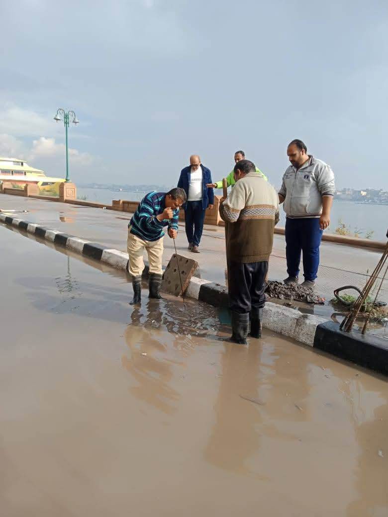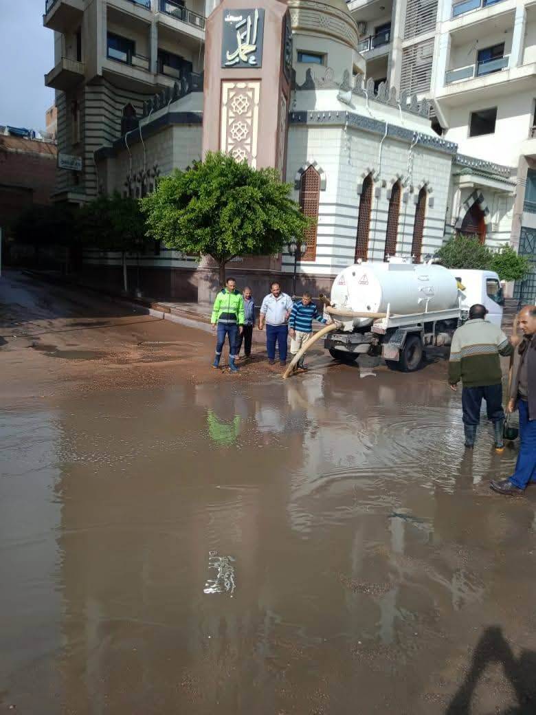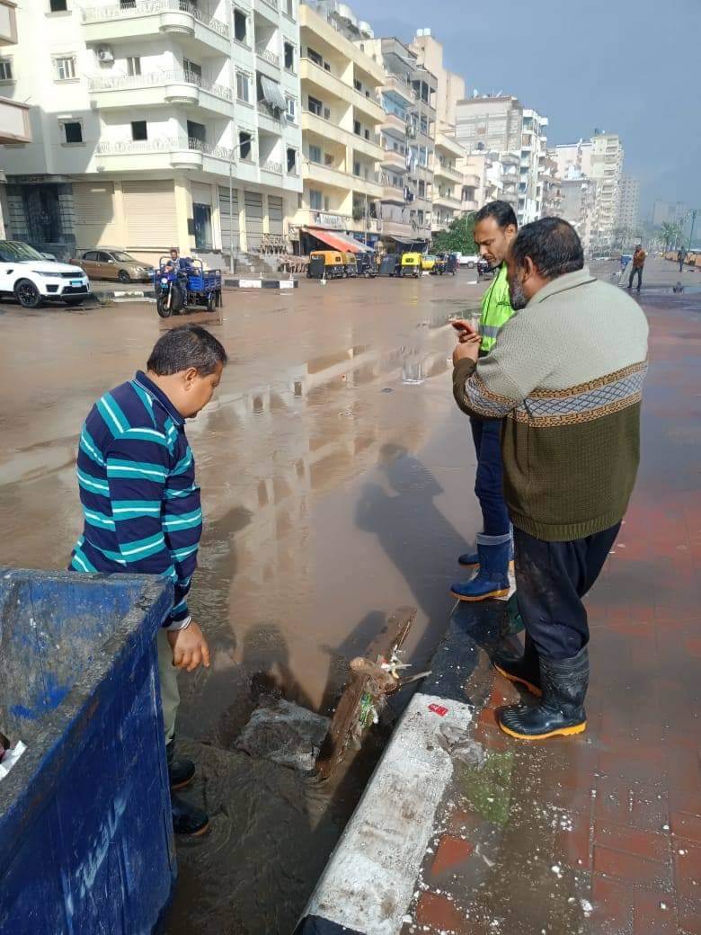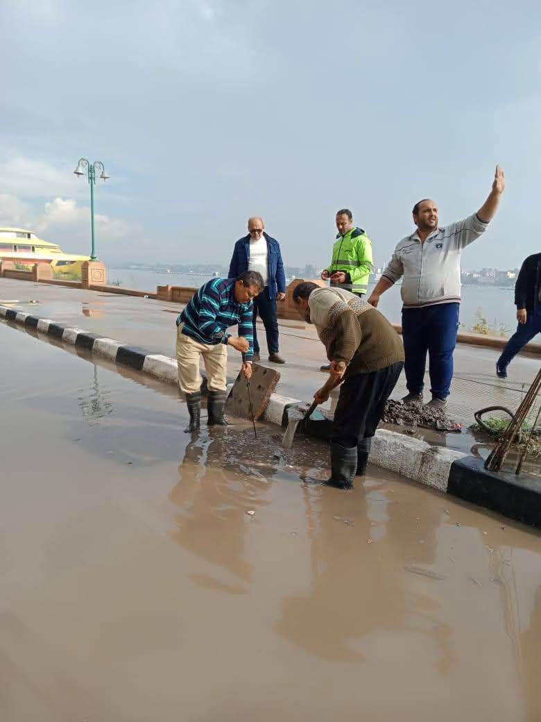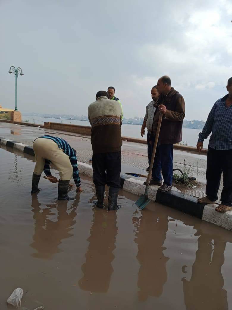شفط مياه الأمطار من شارع كورنيش رشيد وتكثيف أعمال النظافة ورفع المخلفات