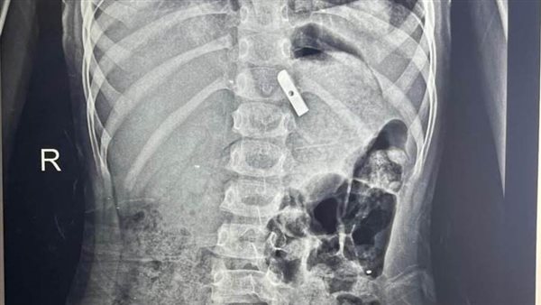 وتم حجز الطفلة فورًا بالمستشفى، وإجراء الفحوصات اللازمة من أشعة وتحاليل، التي كشفت عن وجود جسم غريب داخل المعدة.