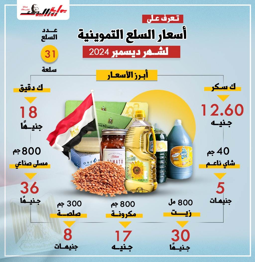 منوعات تعرف على أسعار السلع التموينية لشهر ديسمبر 2024 انفوجراف - داليا عبد المعز السبت 07/ديسمبر/2024 - 09:20 م 12/7/2024 9:20:59 PM أسعار السلع التموينية لشهر ديسمبر 2024 # التموين # السلع التموينية # أسعار # دعم السلع التموينية # الدعم النقدي # اسعار السلع التموينية