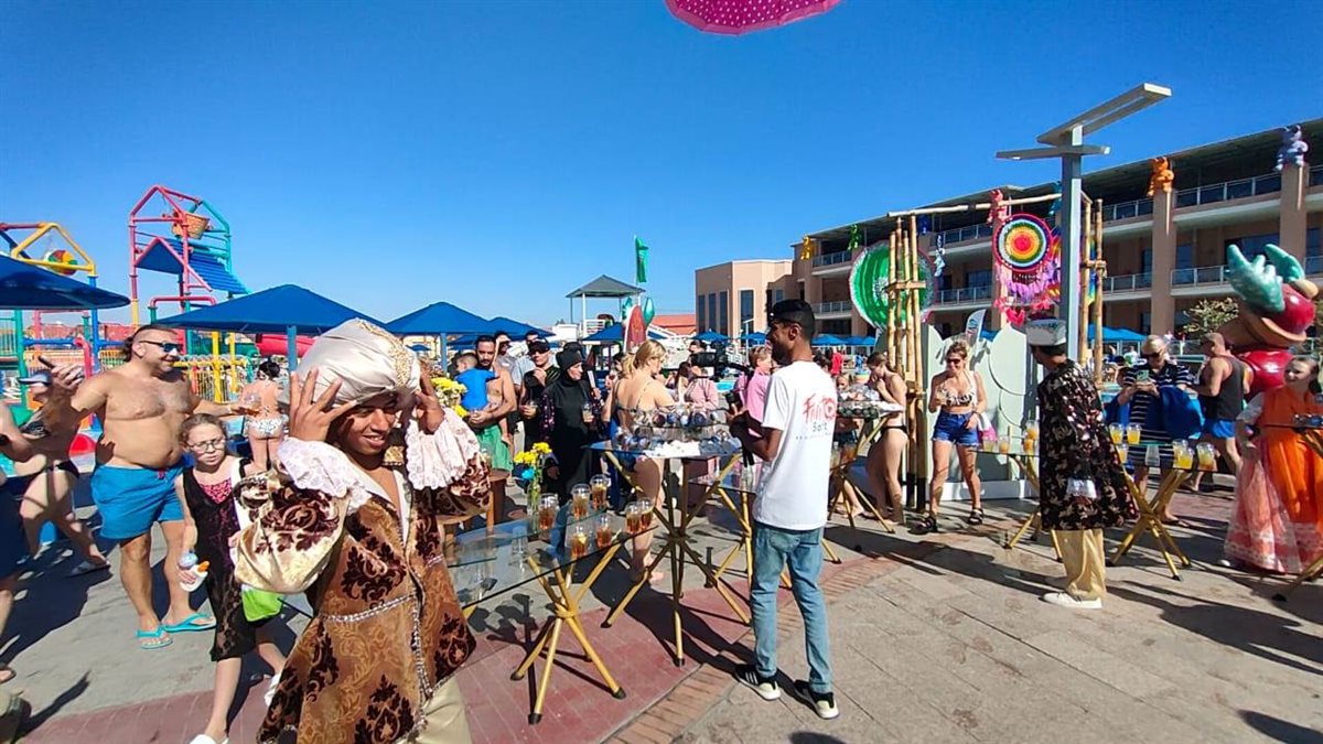 وقال الخبير السياحي محمد عيد، إن اليوم تم عمل يوم ترفيهي للفنون الهندية بمشاركة عدد من الفقرات الفنية الهندية التي نالت إعجاب السياح على الشاطى وحمامات السباحة.