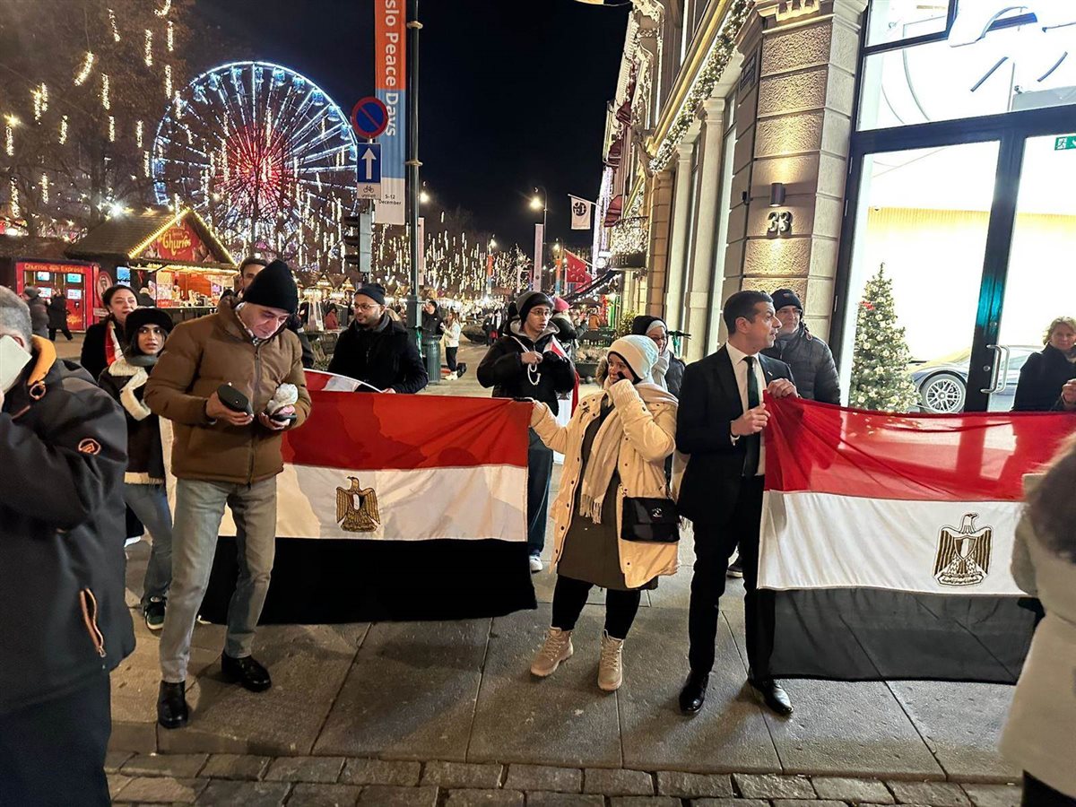 الجالية المصرية بالنرويج تتجمَّع أمام مقر إقامة الرئيس السيسي