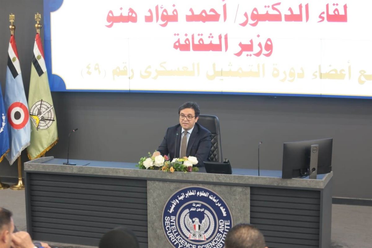 التقى الدكتور أحمد فؤاد هنو، وزير الثقافة، مع 72 من أعضاء دورة التمثيل الدبلوماسي العسكري المصري، وزوجاتهم، ضمن البرنامج التأهيلي المُعد للأعضاء، والذي يهدف إلى تعزيز دورهم في تمثيل مصر بالخارج، وذلك بحضور العميد محمد صلاح، رئيس جهاز الملحقين الحربيين.