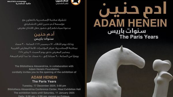 تفتتح مكتبة الإسكندرية بالتعاون مع مؤسسة آدم حنين للفن التشكيلي، معرض "آدم حنين، سنوات باريس" في تمام الثالثة مساء الثلاثاء 17 ديسمبر 2024 في قاعة المعارض الغربية بقاعة المؤتمرات بمكتبة الإسكندرية.