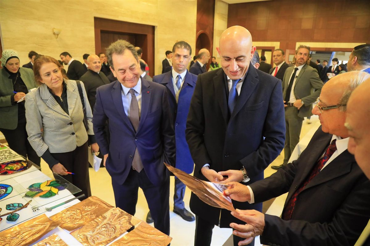 ورافق وزير التربية والتعليم والسفير الفرنسى، خلال زيارتهما السيد دانييل ريجنو ملحق التعاون التربوي بسفارة فرنسا، والسيد فرانك توريس ملحق تعاون اللغة الفرنسية بالمعهد الفرنسي، ومنال جندي مساعدة قطاع التعليم بالمعهد الفرنسي، والأب رومان أمين مدير مدرسة العائلة المقدسة "الجزويت" .