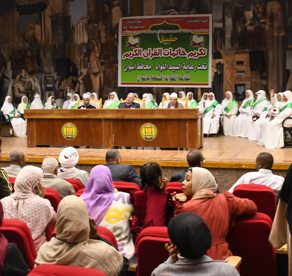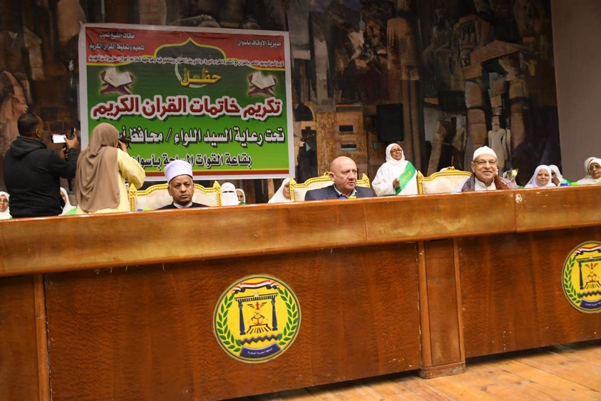 و قدم السكرتير العام فى كلمته نيابة عن محافظ أسوان، التهنئة لخاتمات القرآن حيث إن تكريمهن يؤكد على أن مصر هي مهد السماحة والاعتدال بين الأديان، وستبقى أمد الدهر منارة الحضارة والعلم والثقافة