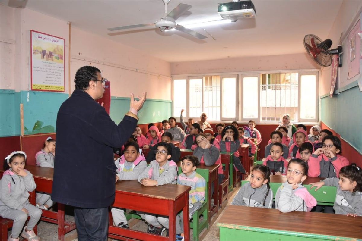 بدأ برنامج اليوم بزيارة المدرسة وحضور طابور الصباح والتعريف بالمشروع وأهدافه ونقل تحيات الدكتور أحمد فؤاد هنو وزير الثقافة، والدكتور وليد قانوش رئيس قطاع الفنون التشكيلية القائم على المشروع.
