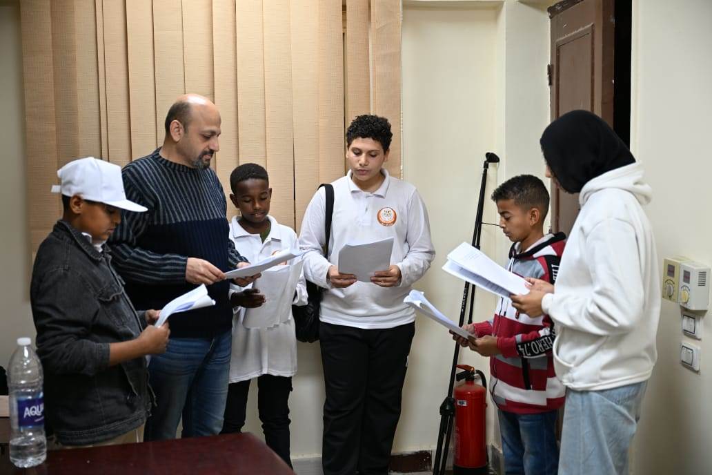 وخلال ورشة الموسيقى واصل الفنان ماهر كمال تدريب الأطفال على تقديم بعض الأغاني الطربية مع تعريفهم بكيفية التتقل بين الطبقات الصوتية.