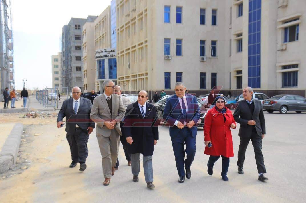 عقب ذلك تفقدت اللجنة مقر المباني المخصصة للجامعة الأهلية، وقاعاتها الدراسية والتدريبية ومعاملها البحثية, مروراً بالمدرجات المركزية والمدينة الطبية لجامعة كفر الشيخ.