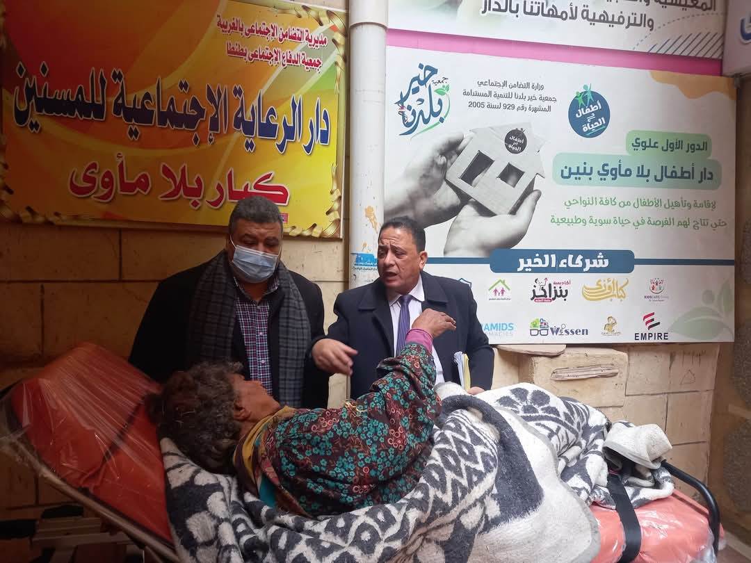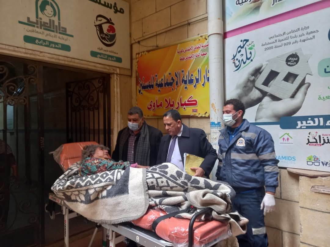 وقام رئيس الفريق ومعاونه رضا شاهين عضو فريق التدخل السريع، بنقلها ونجلها إلى دار رعاية المسنين بطنطا، للأقامة بها ورعايتهما.