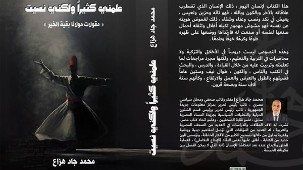 ضمن فعاليات الدورة القادمة من معرض القاهرة الدولي للكتاب، يطل الكاتب والمفكر محمد جاد هزاع على قرائه بكتاب جديد بعنوان "علمني كثيرا ولكني نسيت ..مقولات مولانا بقية الخير"، الصادر عن دار غراب للنشر والتوزيع.