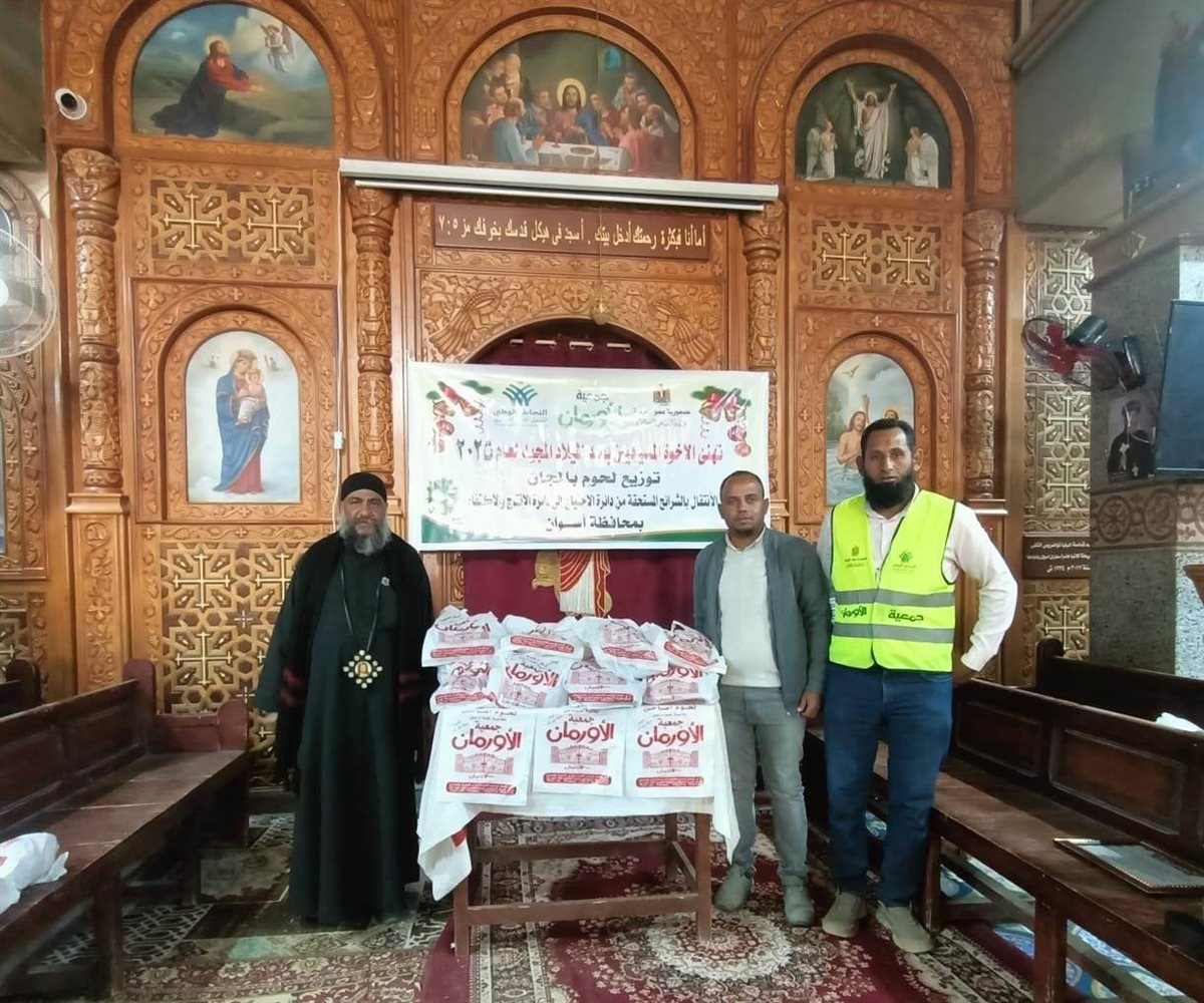 بالصور.. توزيع لحوم مجانًا بـ5 كنائس في محافظة أسوان