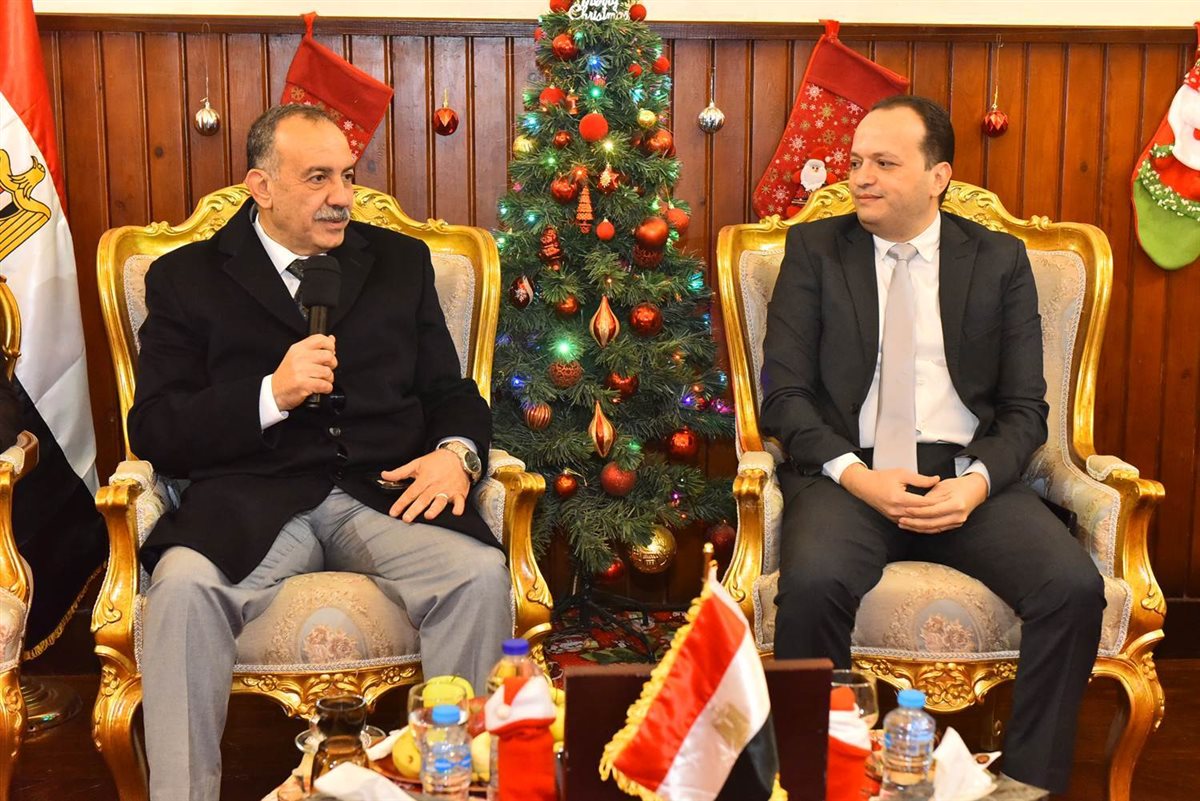 رافقه خلال الزيارة الدكتور مينا عماد نائب المحافظ، وخالد عبدالرؤوف السكرتير العام المساعد للمحافظة، والنواب (محمد حمدي دسوقي عضو مجلس النواب، والمهندس ياسر عمر، واللواء عصام العمدة، وأحمد حسين جودة) أعضاء مجلس النواب، وفضيلة الشيخ محمود جاهين وكيل وزارة الأوقاف بأسيوط، وأحمد سويفي وكيل وزارة الشباب والرياضة بأسيوط، ومحمد إبراهيم دسوقي وكيل وزارة التربية والتعليم بأسيوط، وخميس محمد وكيل وزارة الزراعة بأسيوط، وخالد محمد وكيل وزارة التموين بأسيوط، وعيون إبراهيم رئيس حي شرق، وممدوح جبر رئيس حي غرب، ومحمود ياسين رئيس مركز ومدينة الفتح، وسوزان محمد رئيس مركز ومدينة أبنوب، وفضيلة الشيخ محمد عبداللطيف مدير عام الدعوة بمديرية الأوقاف بأسيوط، والشيخ ناصر محمد السيد مدير المتابعة بالمديرية، ومجدي عزيز مدير عام إدارة التفتيش والمتابعة بالمحافظة، ومصطفى فهمي مدير إدارة المتابعة الميدانية بالمحافظة، محمد الأمير وكرم عبدالحفيظ نائبي رئيس مركز ومدينة أبنوب، ومعتصم أحمد مدير مكتب مجلسي النواب والشيوخ والعديد من القيادات التنفيذية والدينية بالمحافظة، وبمشاركة من شباب وفتيات مديرية الشباب والرياضة الذين حرصوا على الحضور لتقديم التهاني تعميقاً لقيم المواطنة والمحبة والسلام.