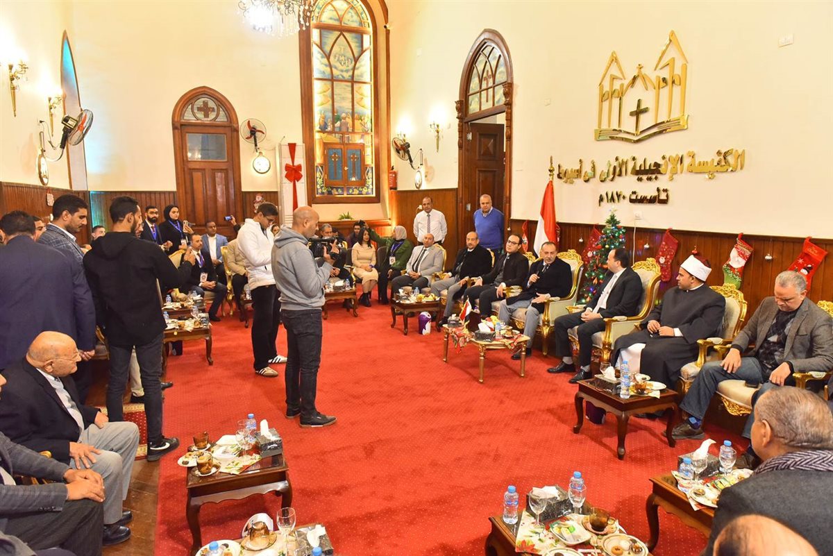 من جانبه عبر القس باسم عدلي راعي الكنيسة الإنجيلية الأولى عن سعادته لزيارة المحافظ والوفد المرافق له للكنيسة للتهنئة بالعيد موضحاً أن الأعياد الدينية في مصر أعياد المصريين وليس أعياد المسيحين أو المسلمين فكلنا واحد وكلنا شعب واحد فدائماً المصريون يتشاركون في أعيادهم وهو ما يساهم في إرسال رسالة محبة للعالم وفرصة طيبة أمام كل إنسان لإحياء الخير في كل مكان مع نفسه وأسرته ومجتمعه من أجل صنع مستقبل أفضل ليس من أجل أنفسنا فقط ولكن من أجل الوطن الذي نعيش فيه.