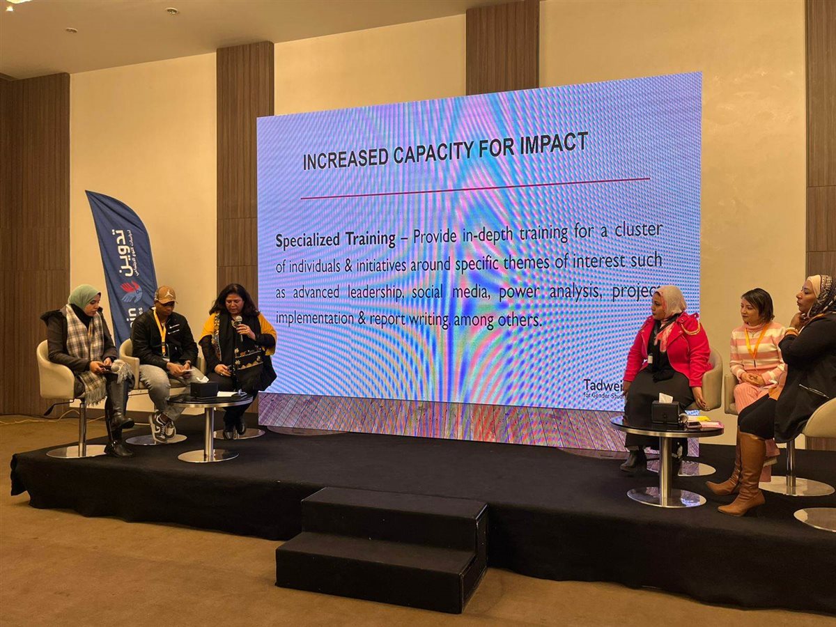 وأشارت إلى اختيار مجموعات من 16 مبادرة وحدث لهذه المبادرات تغيير ولد الاستمرارية والدعم لهذه المبادرات حسب طبيعة كل مبادرة، ولفتت إلى محور بناء الثقة بين المجموعات والمنظمات النسوية الموجودة وتم تشجيع المجموعات للعمل سويًا.