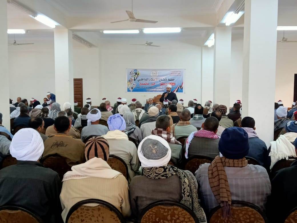 وأوضح أن الشائعات تعد أحد أهم الوسائل التي تستخدمها القوى المعادية لزعزعة الأمن والاستقرار وبث الفتن داخل المجتمع والتحريض على مؤسسات الدولة مشددا على ضرورة التماسك المجتمعى وعدم الانسياق وراء تلك الشائعات المغرضة مؤكدا أن شوائب الفكر تؤدي بالضرورة إلى تهديد الأمن القومي والوطني للبلاد، وأشار إلى أن الدولة تعمل جاهدة لمحاربة والتصدي للشائعات من خلال توفير المعلومات والحقائق عبر المؤسسات الرسمية والموثوقة لافتا إلى أن هناك معلومات أمنية حساسة لا يمكن الإفصاح عنها وهذا لا يقلل من شأن فكرة الشفافية وحرية تداول المعلومات وأكد على دور خطباء المساجد فى تنمية الوعى والفكر.