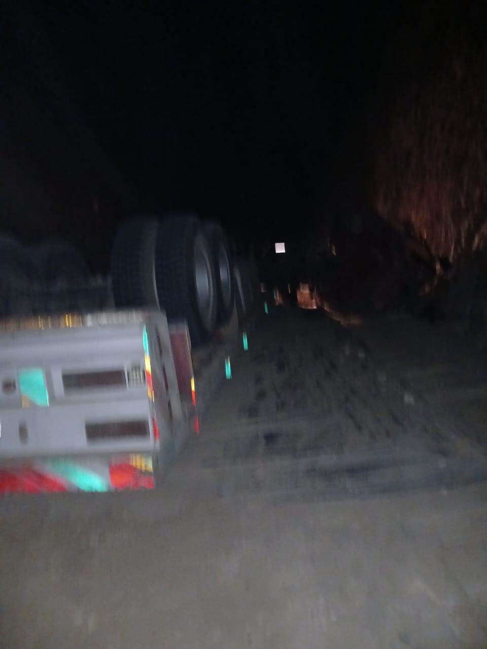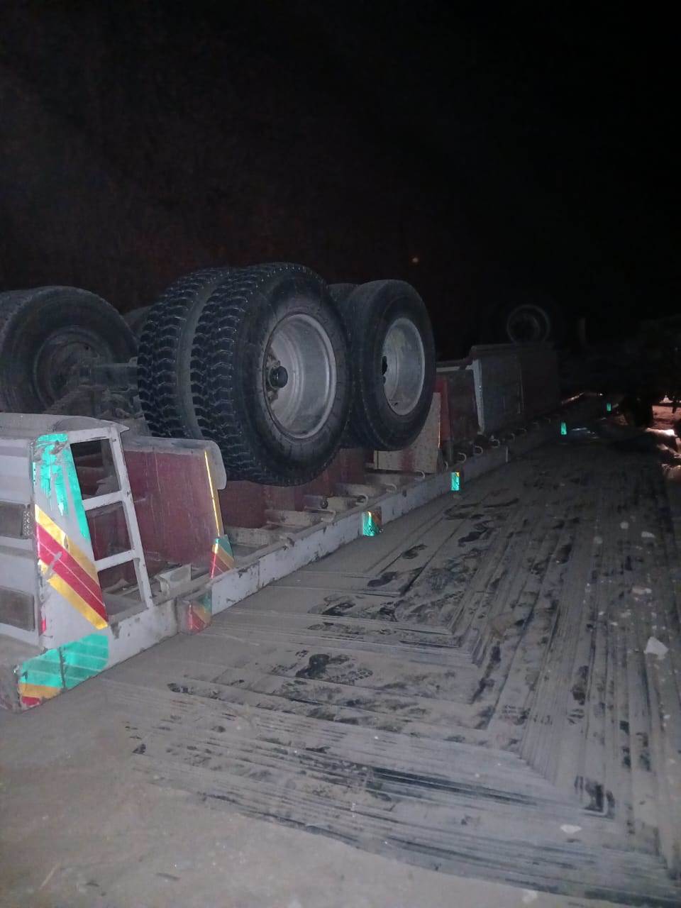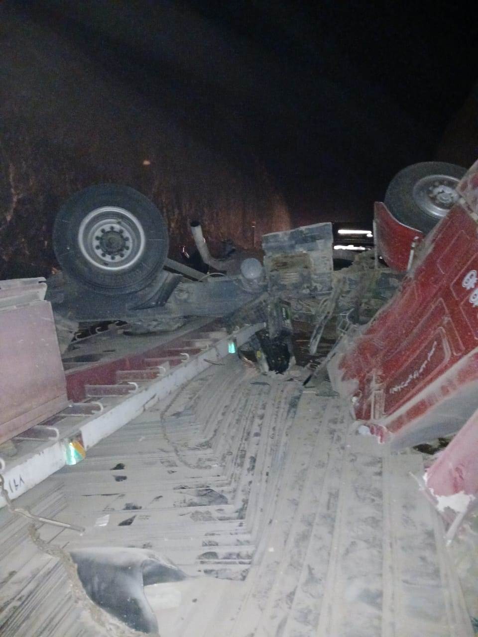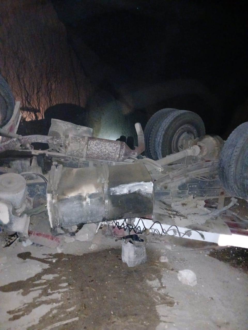 انتقل إلى موقع الحادث ضباط المركز والإسعاف وتبين من المعاينة والفحص انقلاب تريلا مقطورة رقم791 ب أ ج وجرار رقم 7289 م ف ع محمل صاج، واسفر الحادث عن إصابة قائد السيارة ومرافقه، تم نقلهما إلى مستشفى الغنايم المركزي لتلقي العلاج، تحرر محضر بالواقعة وجار العرض على النيابة العامة.