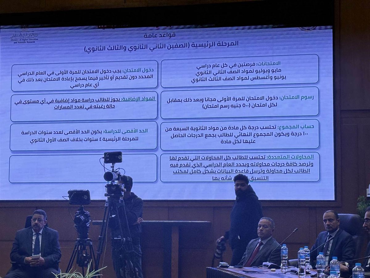 واستعرض الوزيران فلسفة التعديلات الهادفة لإصلاح المنظومة التعليمية المؤسسة للانتقال لمرحلة الجامعة، وتتلخص في اعداد الطلاب للدراسة الجامعية التي تؤهلهم لسوق العمل بمتغيراته، مع تخفيف العبء عن كاهل الأسر، وخفض عدد المواد لتكون بمعدلات عالمية تسهم في تمكين المدرسين من إتمام عدد الساعات الدراسية الكافية.