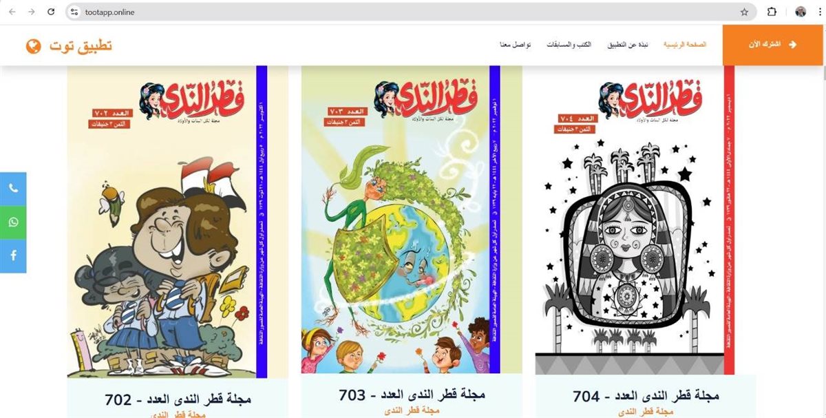 ضمن أنشطة وبرامح وزارة الثقافة، أعلنت الهيئة العامة لقصور الثقافة، بإشراف الكاتب محمد ناصف، نائب رئيس الهيئة، إضافة 18 عددا من إصدارات مجلة "قطر الندى"، إلى موقع وتطبيق "توت" الإلكتروني المجاني المخصص لكتب ومجلات الأطفال، في سياق التحديث الدوري للموقع وبمناسبة انطلاق معرض القاهرة الدولي للكتاب في دورته 56 لعام 2025.