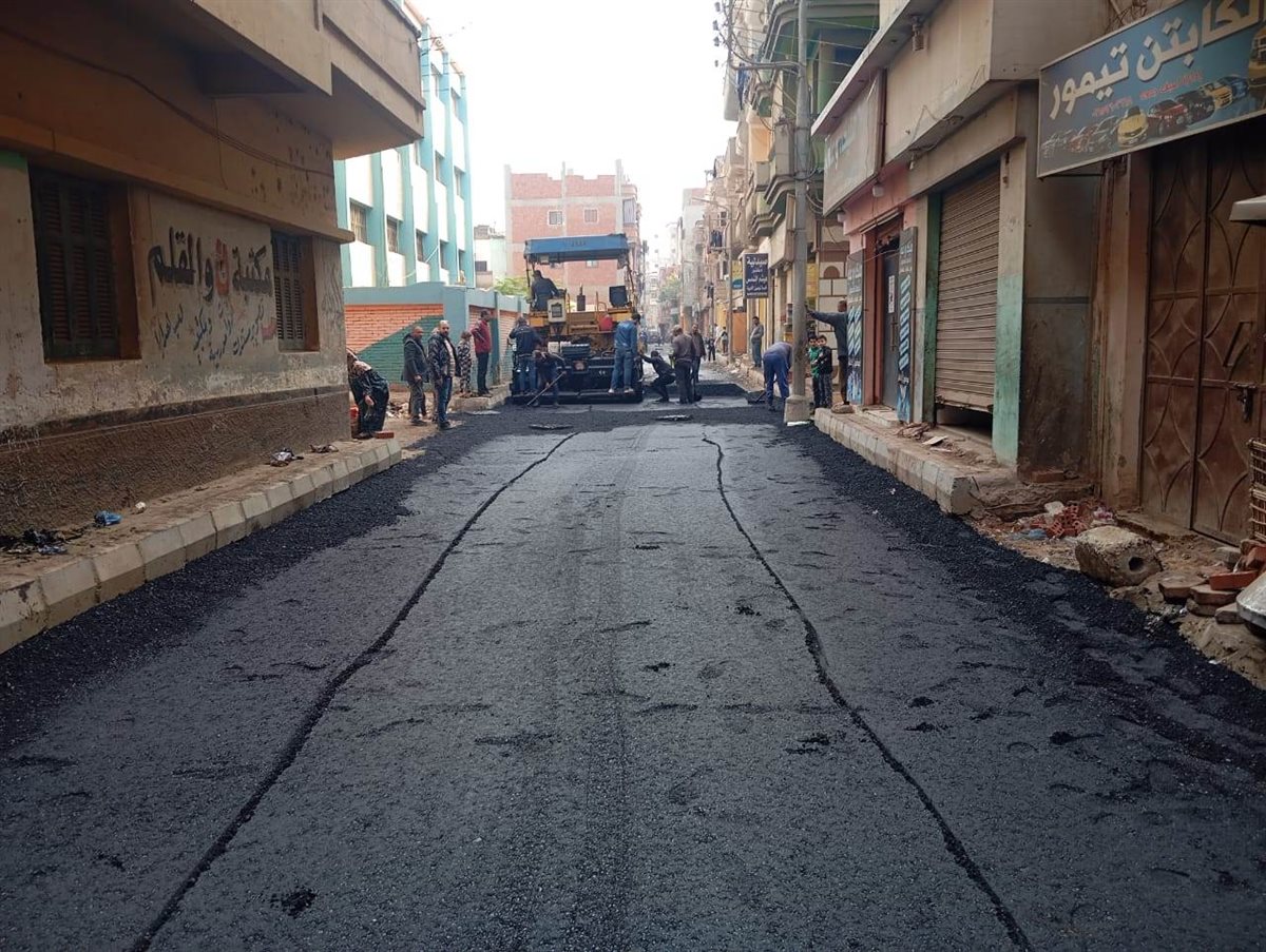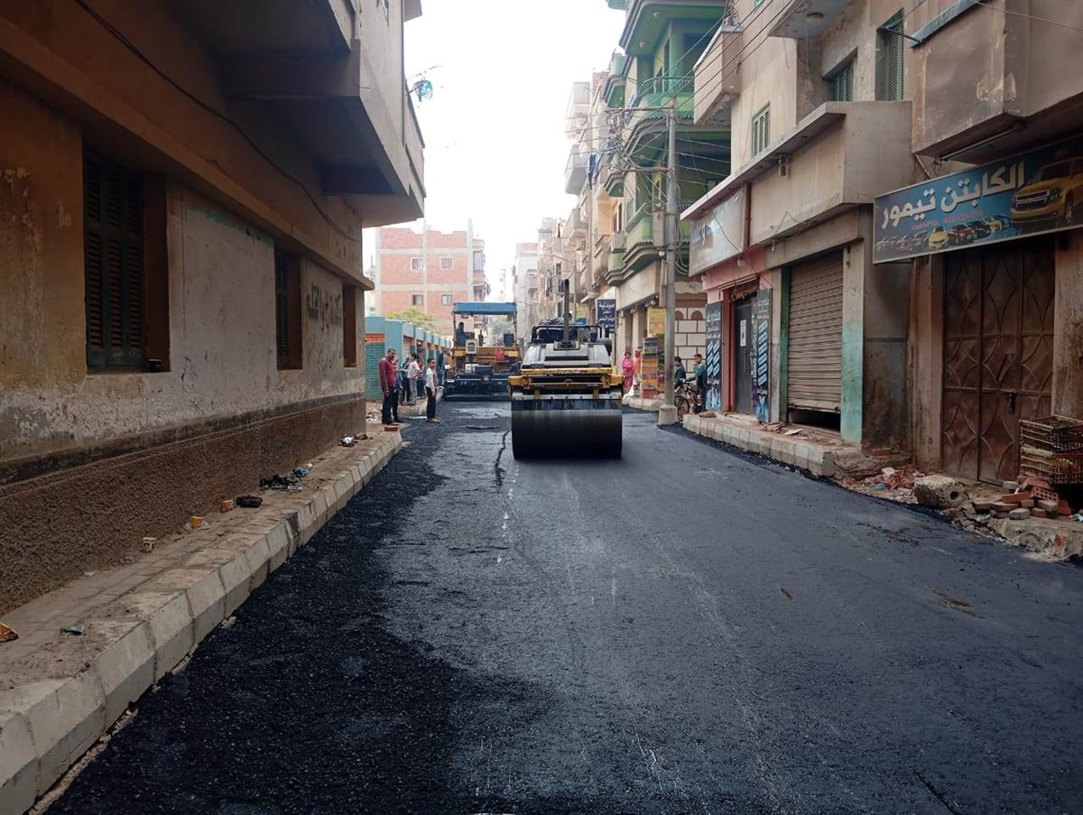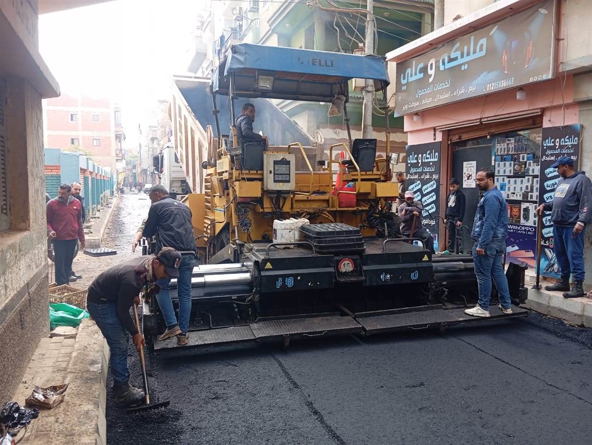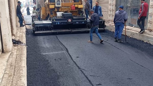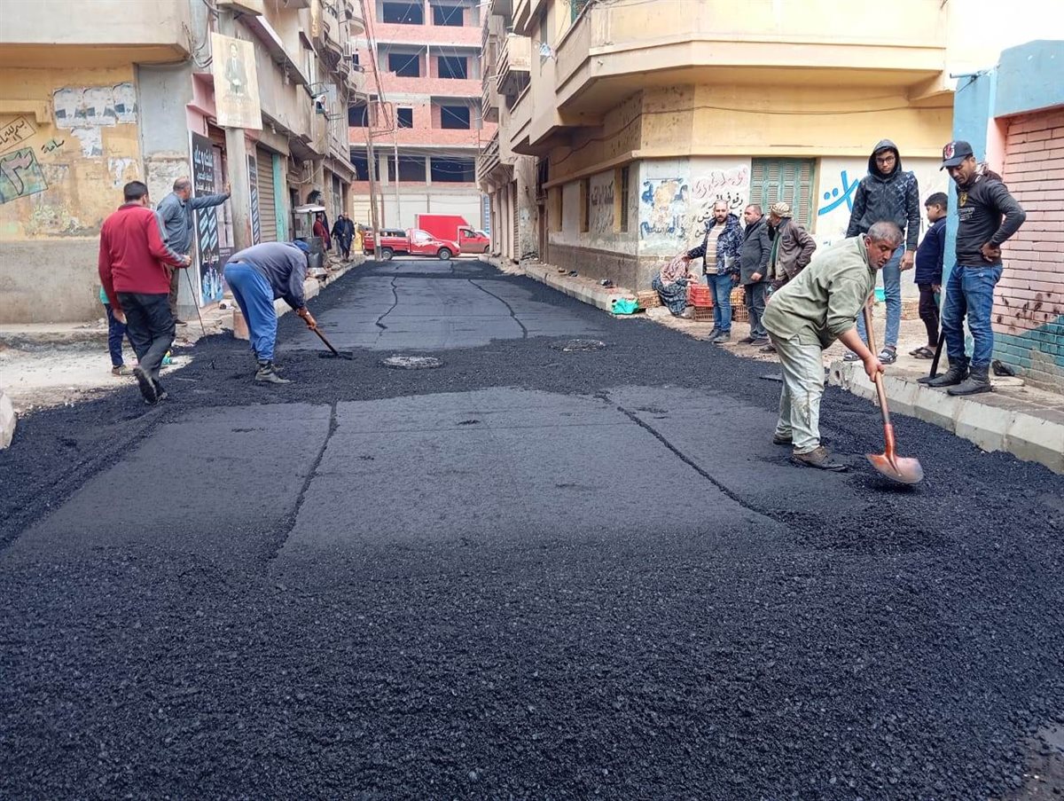 بالصور.. رصف شارع "كشك" بمدينة زفتى في الغربية