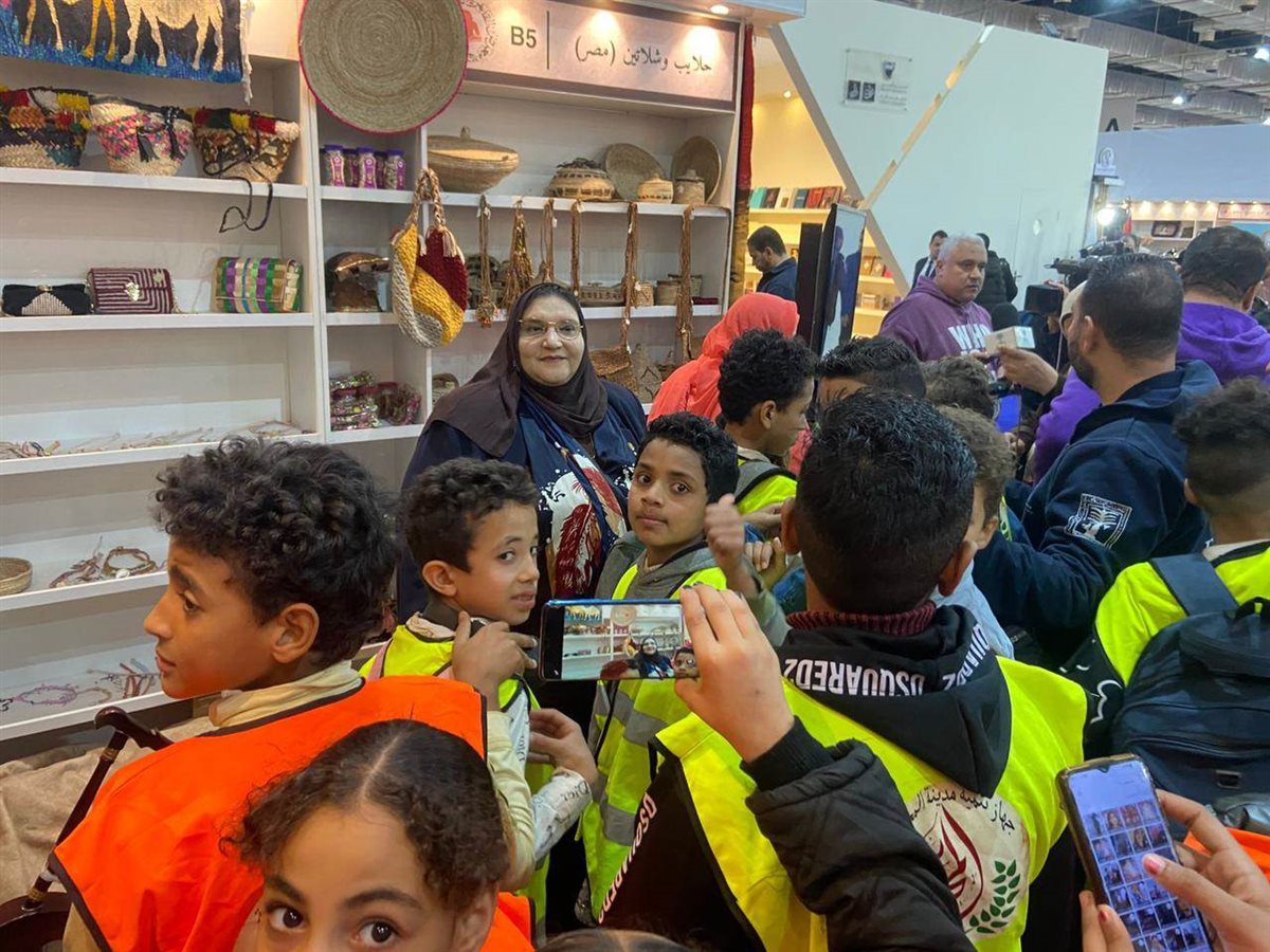 بدأت الجولة بزيارة جناح حلايب والشلاتين في قاعة 3، حيث استعرض الأطفال المنتجات اليدوية وتعرفوا على تراث المنطقة، مثل عادات قبائل البجا (العبابدة والبشارية) التي تعتمد حياتها على الرعي والتقاليد المرتبطة بالبيئة.